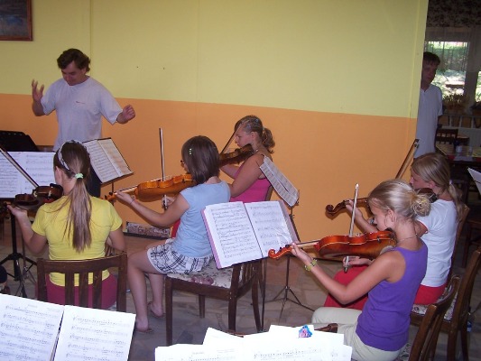 | orchestr při zkoušce | orientace v terénu | oslava 10. výročí hudebního tábora |