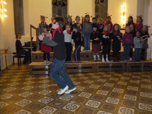 | Stala se hrozná věc! | Uhoněný mraveneček po koncertě | V popředí účinkující, v pozadí posluchači |