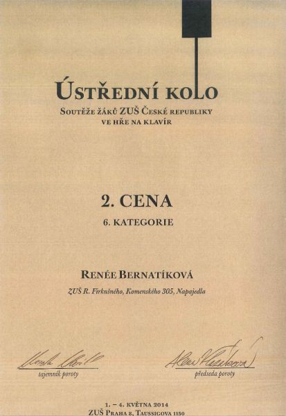 1. - 4. května 2014 - Ústřední kolo soutěže žáků ZUŠ ve hře na klavír - ZUŠ Taussigova Praha