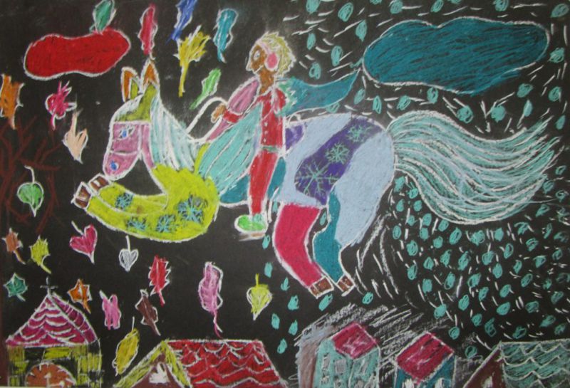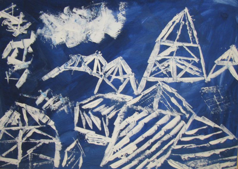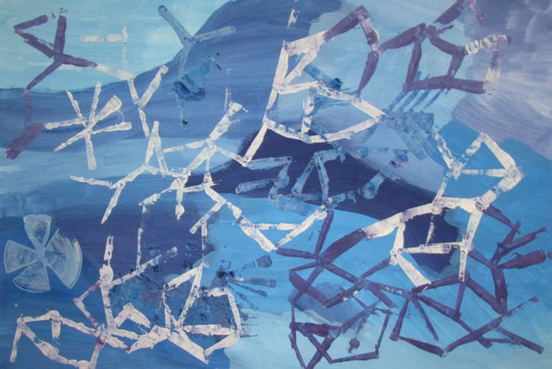 Mráz / Malba špachtlí - práce žáků 4. ročníku ze třídy p. uč. Martiny Liškové