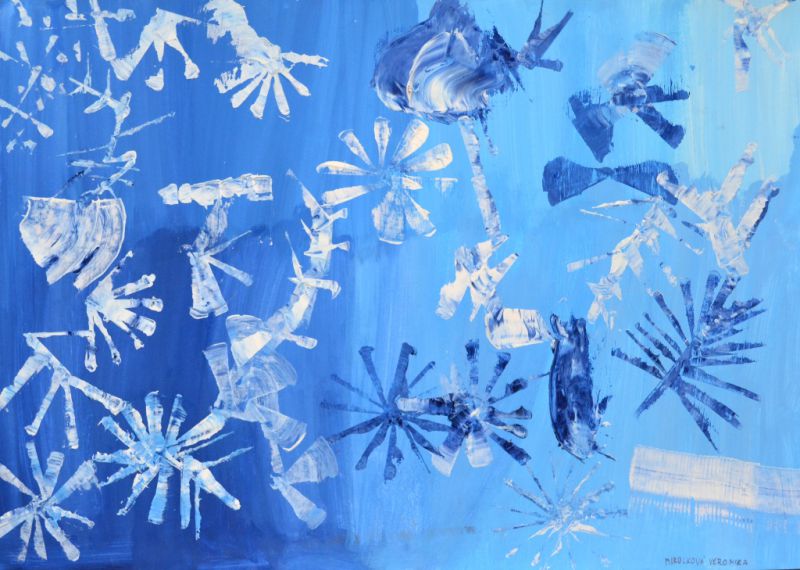 Mráz / Malba špachtlí - práce žáků 4. ročníku ze třídy p. uč. Martiny Liškové