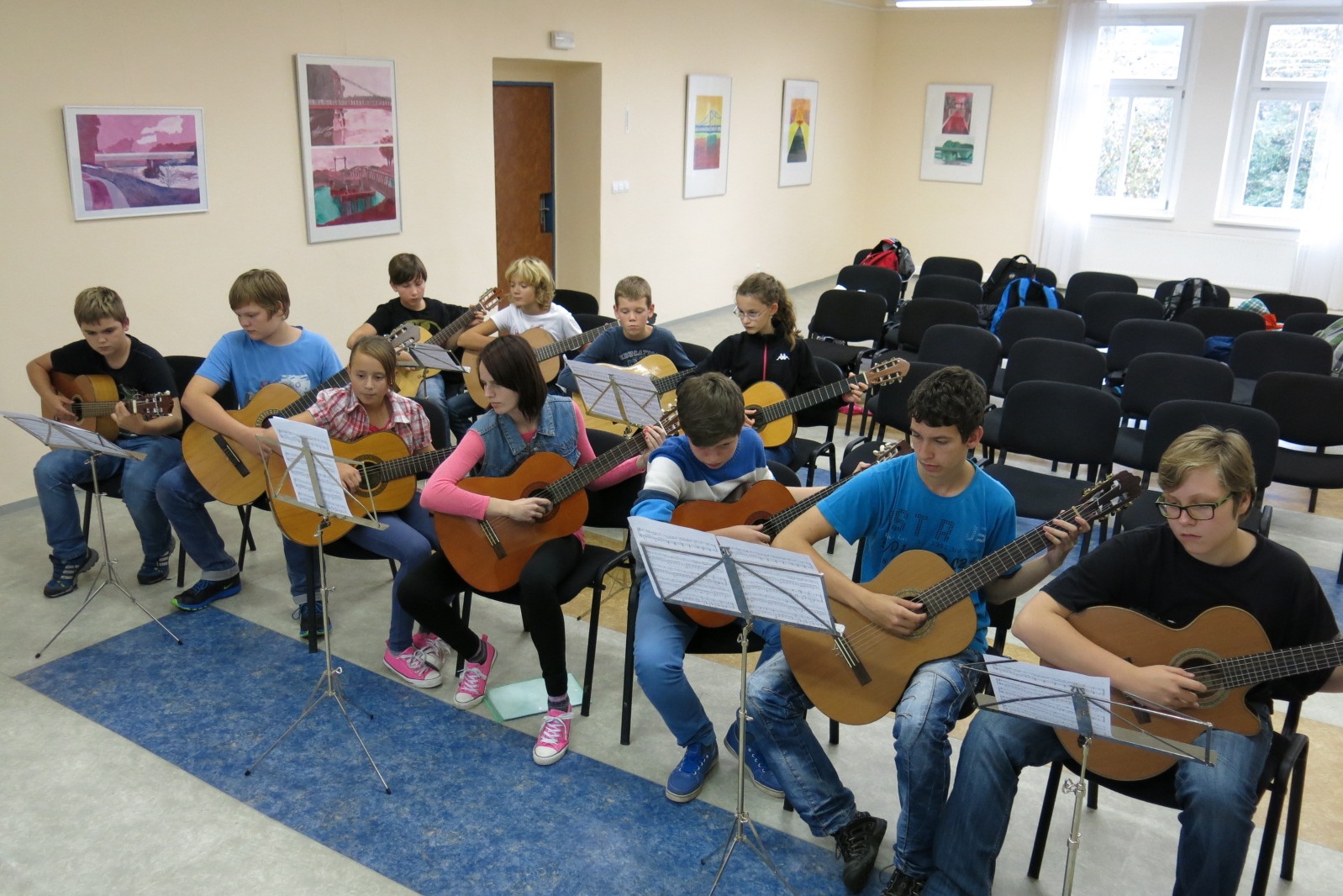 Výuka kytarového souboru je převážně zaměřena na hru klasické a renesanční hudby. Vzhledem k zájmu žáků se hra v kytarovém souboru orientuje taktéž na doprovody písniček, které určitě ocení především oni sami.Kytarový soubor vede pan učitel Prokop Jan.