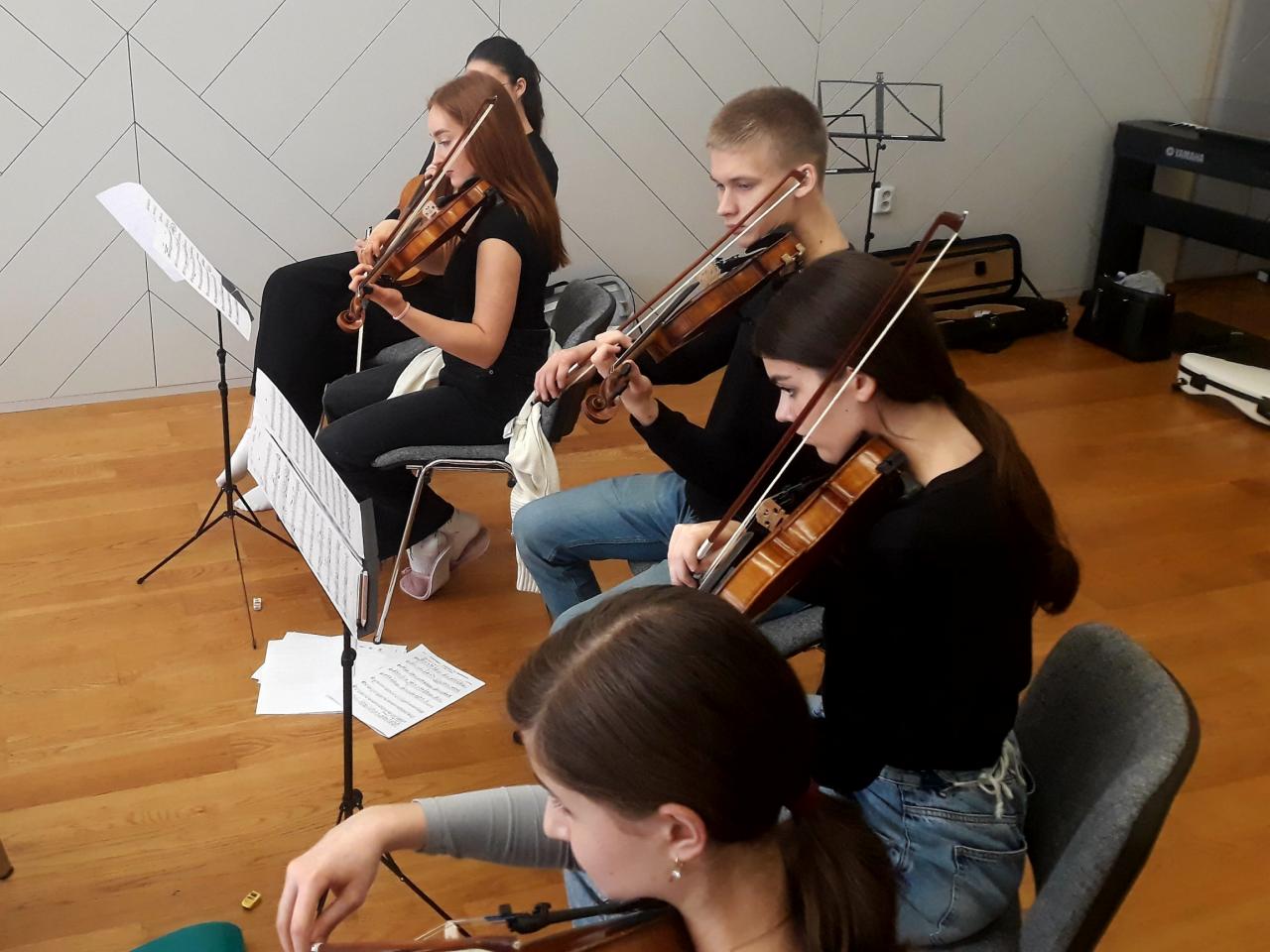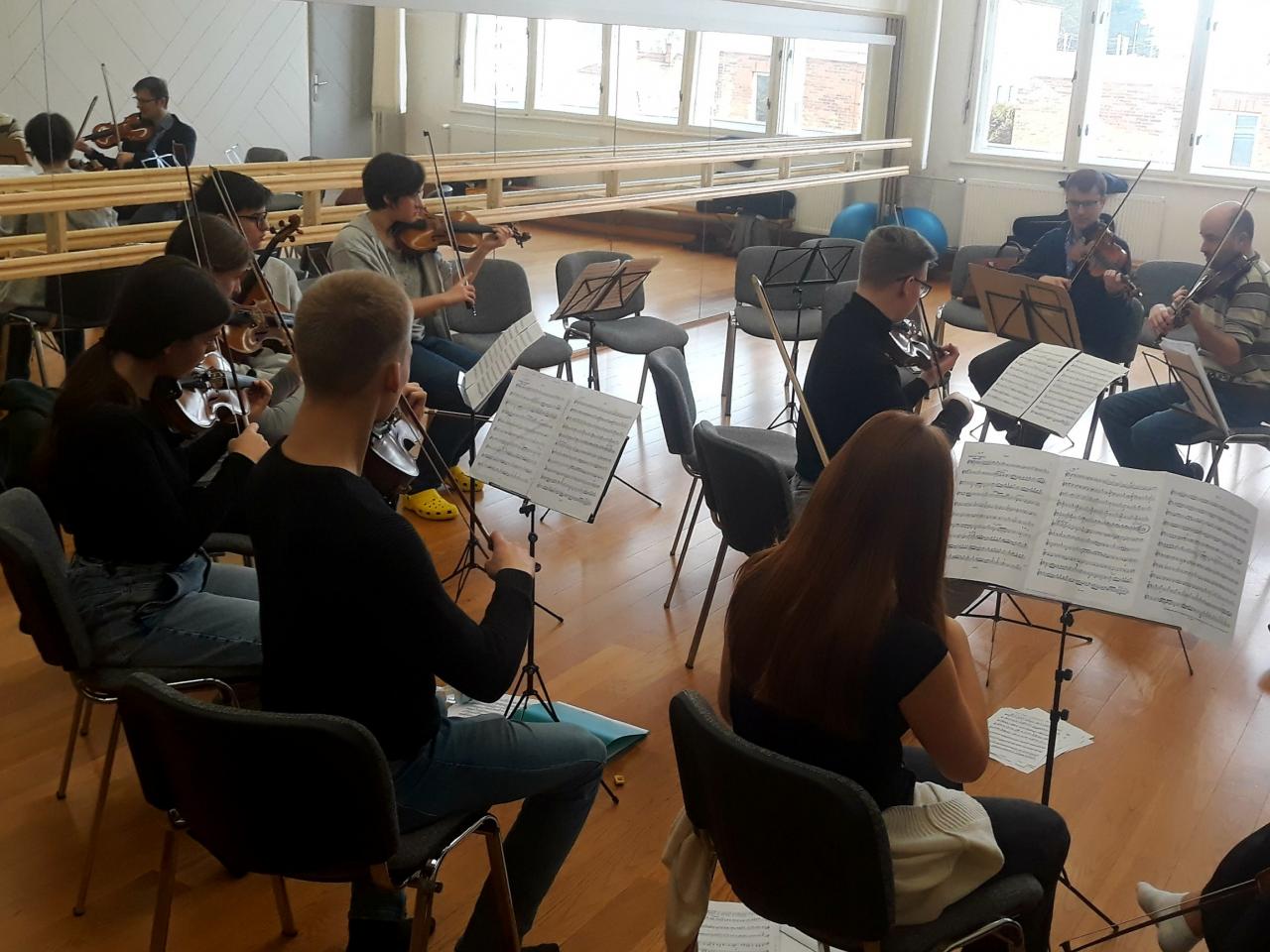 Malí velcí filharmonici Společný orchestr žáků ZUŠ a hráčů Filharmonie B.Martinů Zlín - soustředění Housle Zuzka Škárová, Dan Otradovec