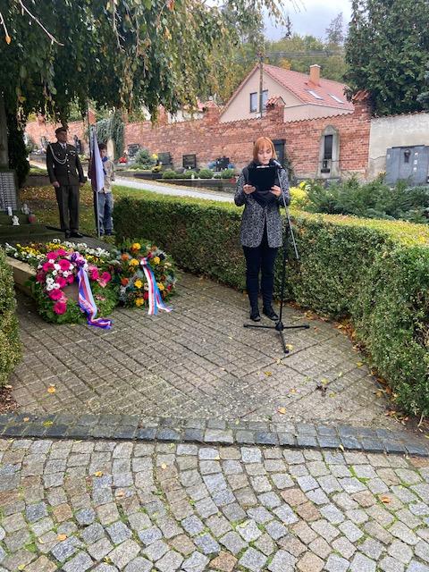 24. 10. 2025, městský hřbitov Napajedla Paní učitelka Veselá zazpívala k uctění památky státní hymnu.
