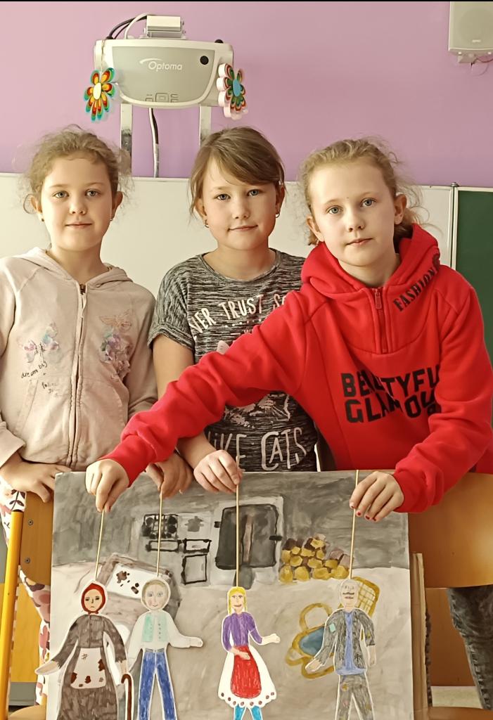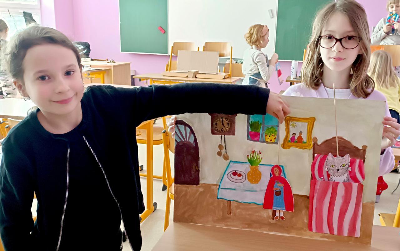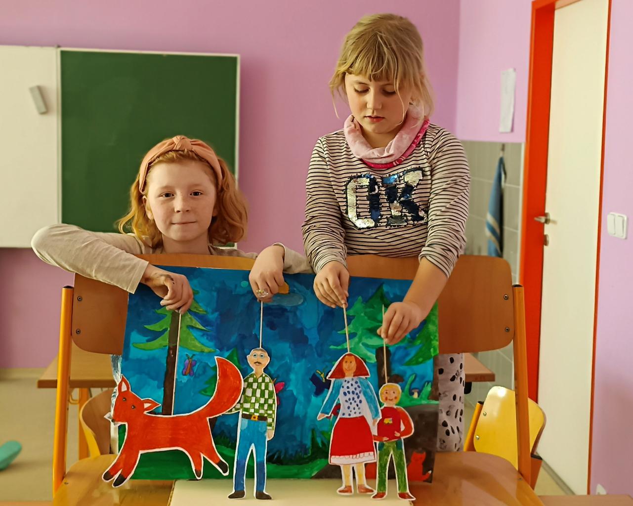 S dětmi 1.-3. ročníku v Halenkovicích jsme vyráběli kulisy a plošné loutky a pak jsme hráli pohádkové divadlo (p. uč. Jana Šnédarová).