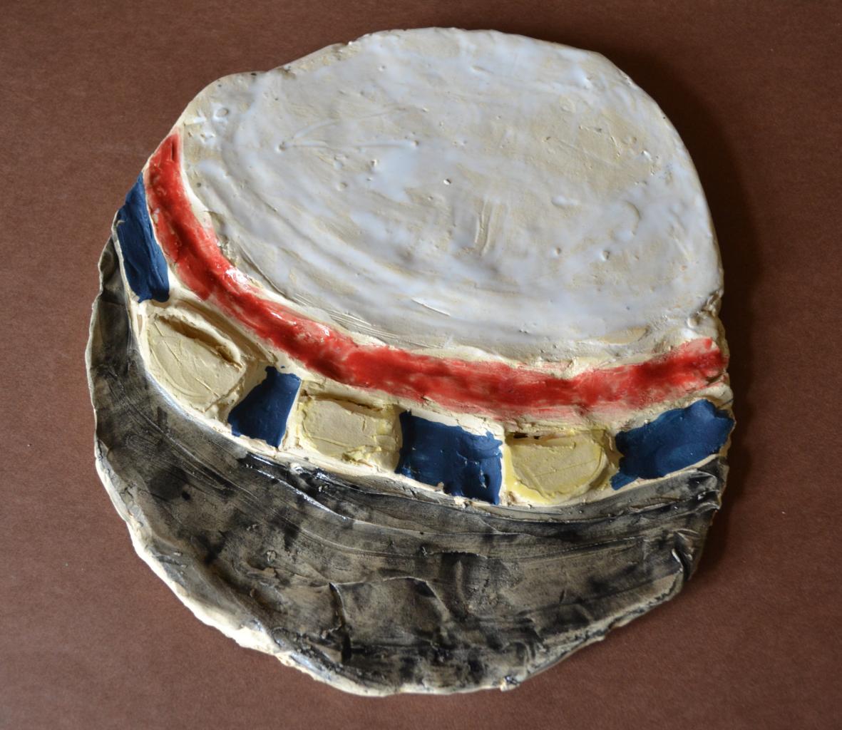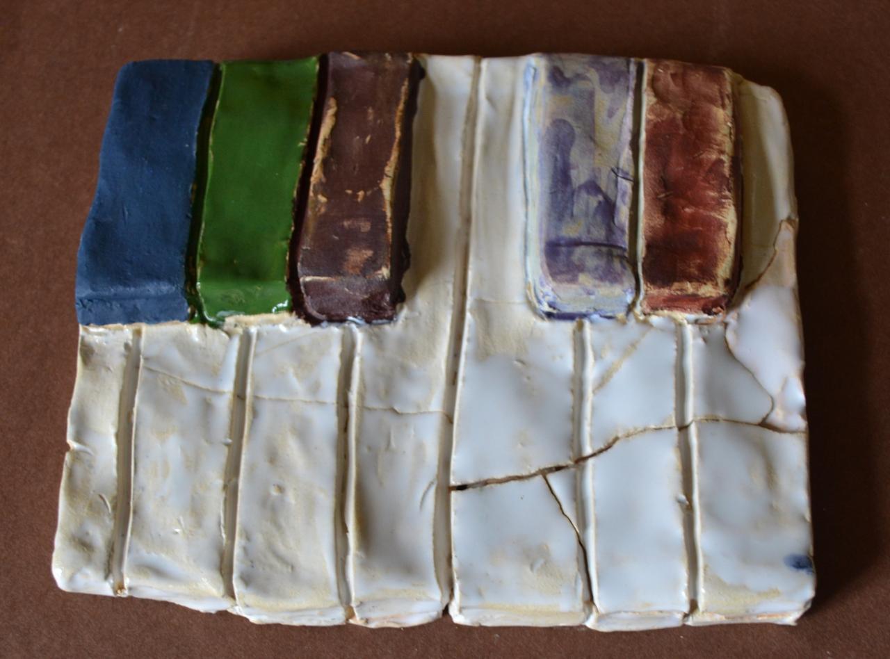 Reliéf - keramická hlína, barveno glazurou a engobou