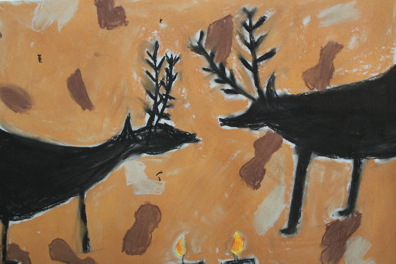 Inspirace JESKYNNÍM MALÍŘSTVÍM, suchý pastel, žáci p.uč.Langrové