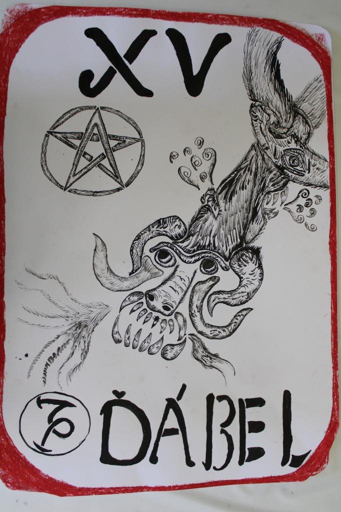 INSPIRACE TAROTOVÝMI KARTAMI, kombinovaná techniky, žáci p.uč.Langrové