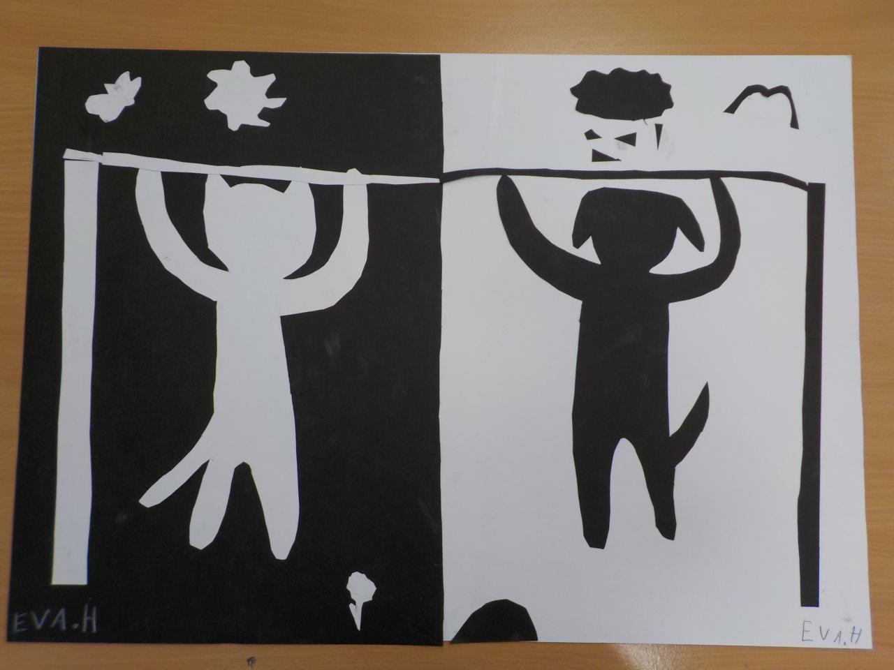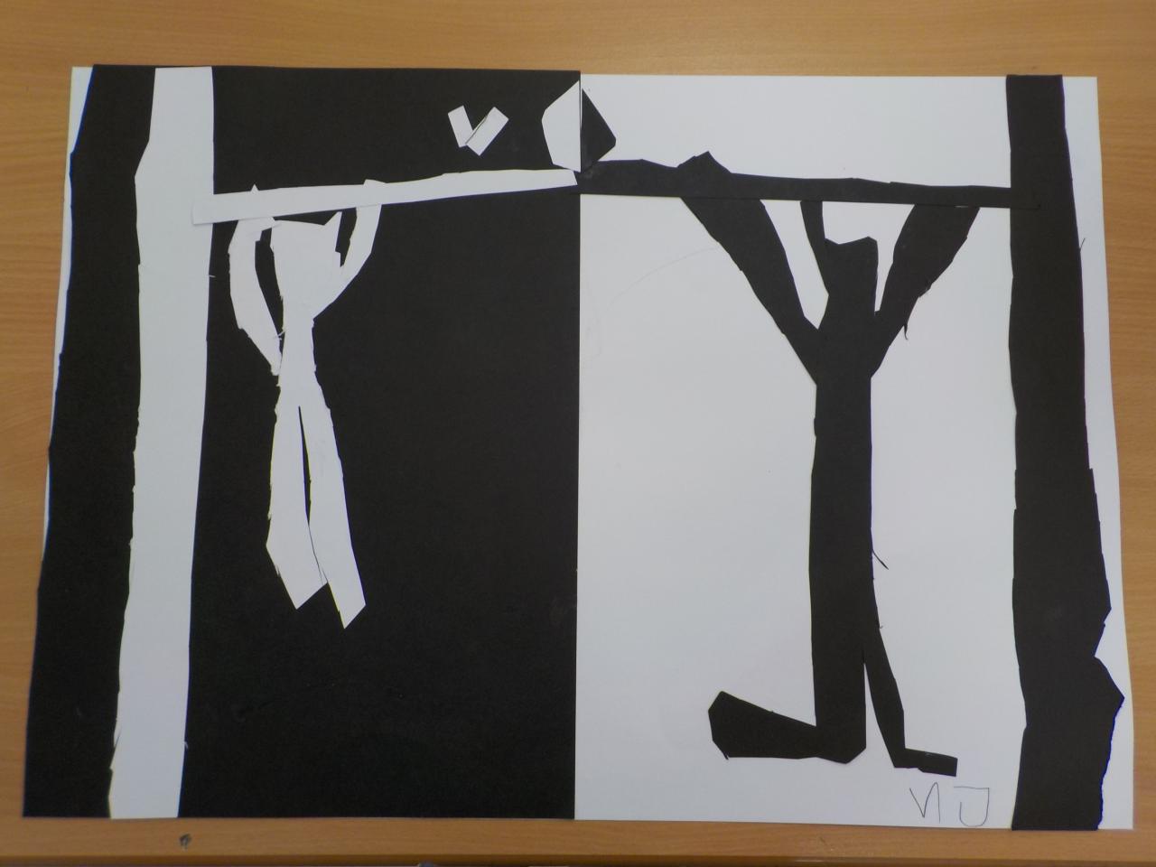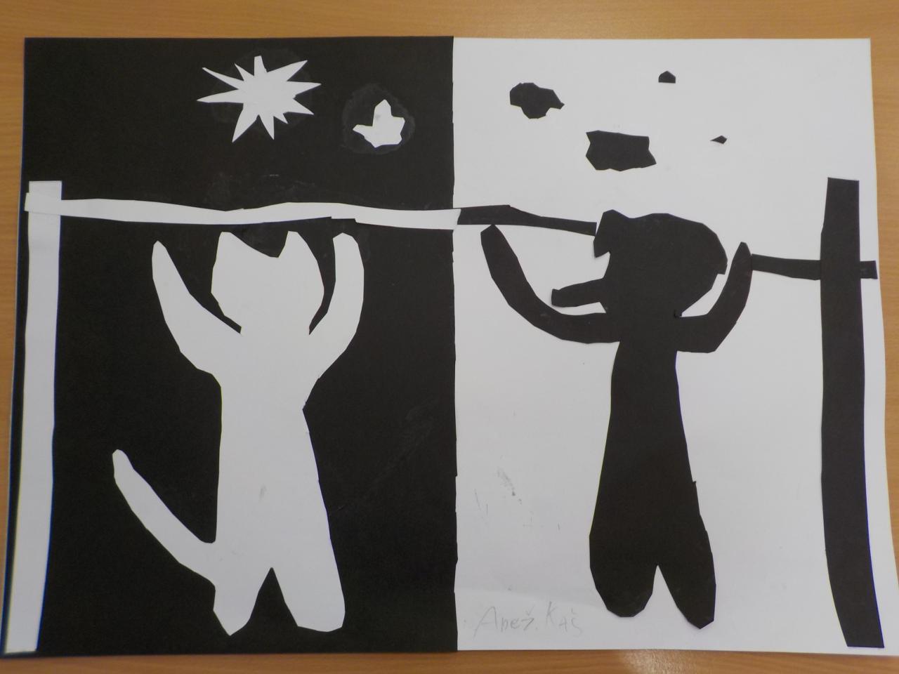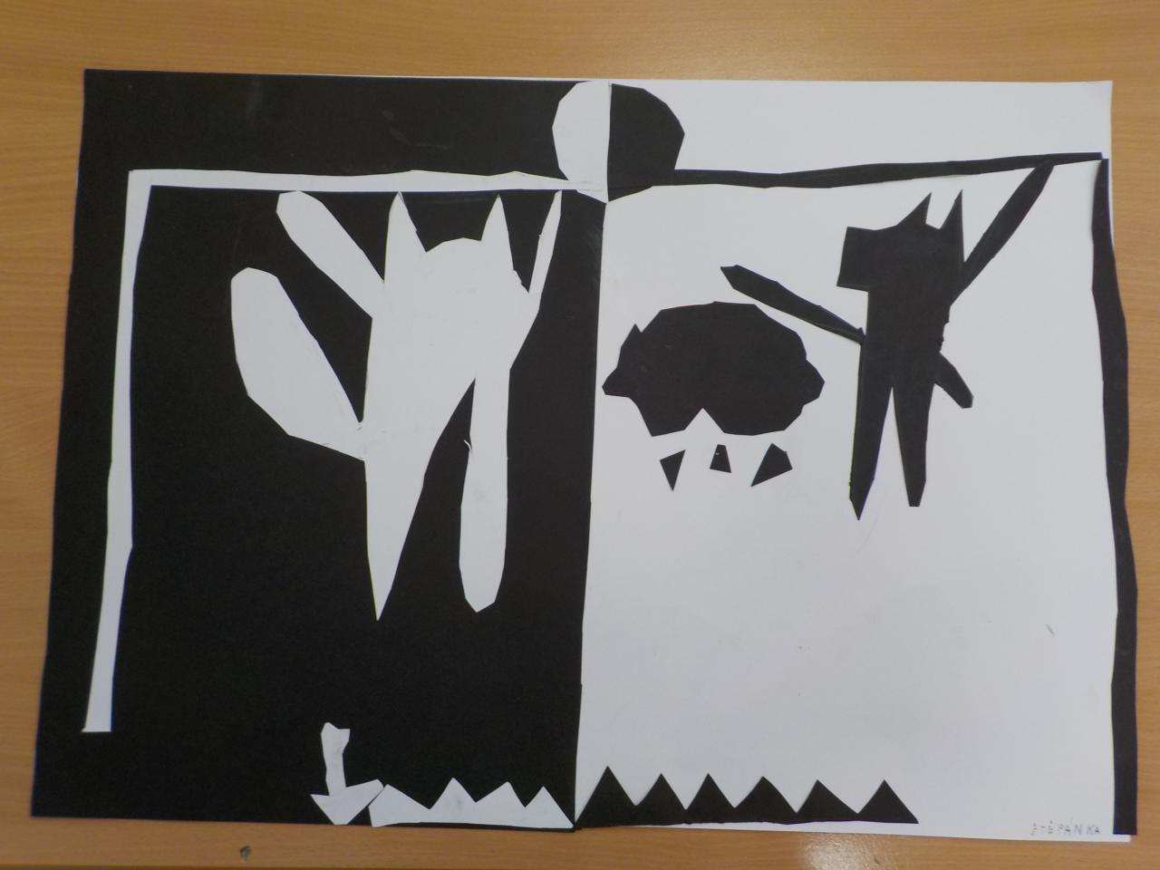 Koláž, jednoduchý barevný kontrast - černá/bílá