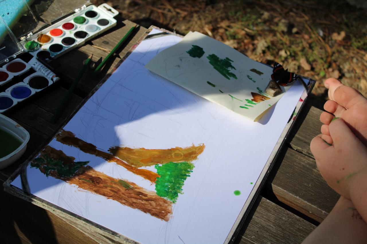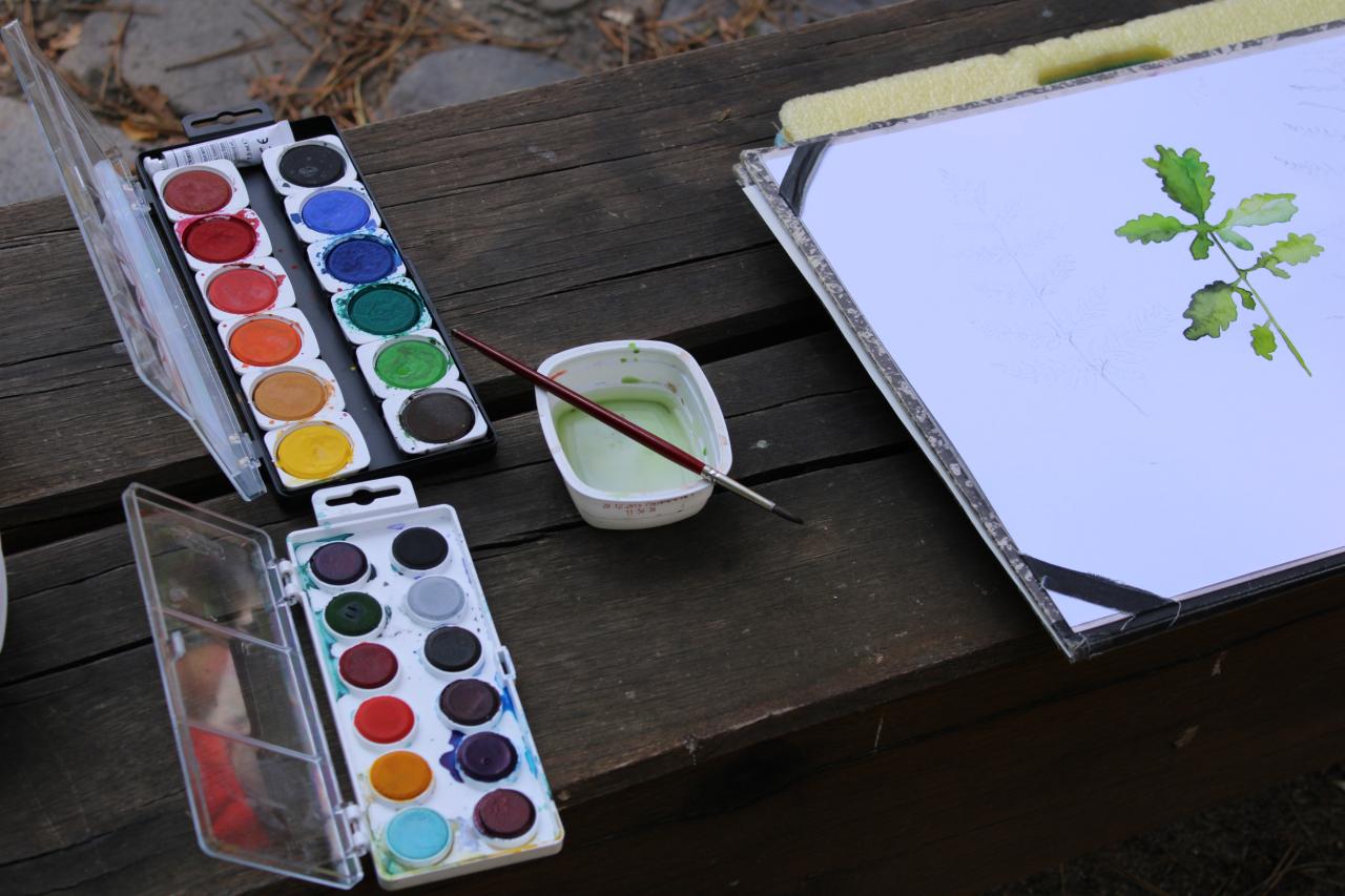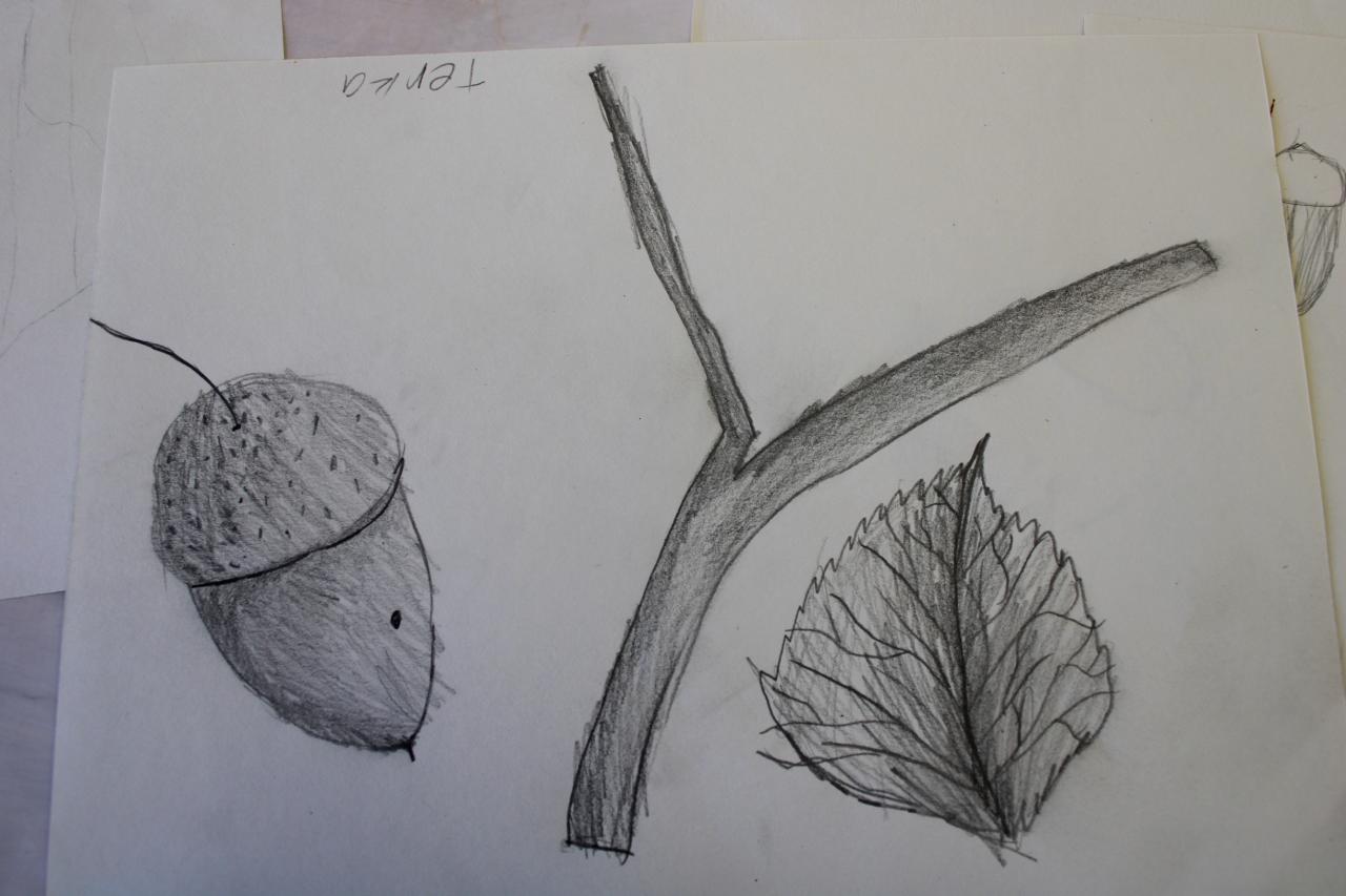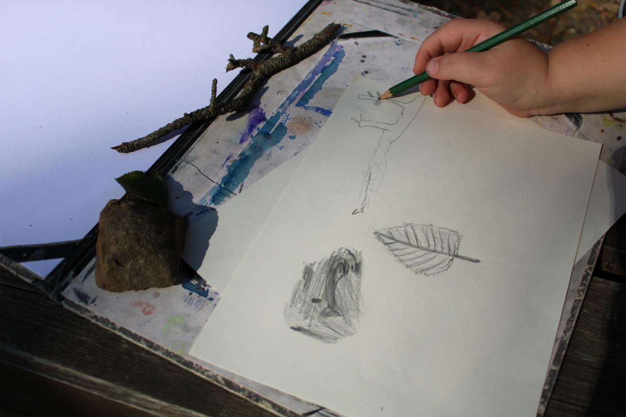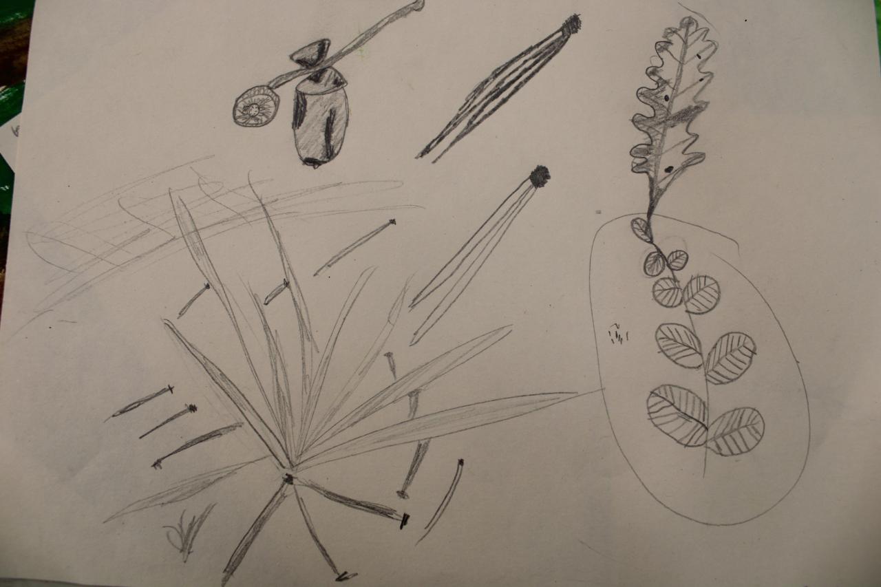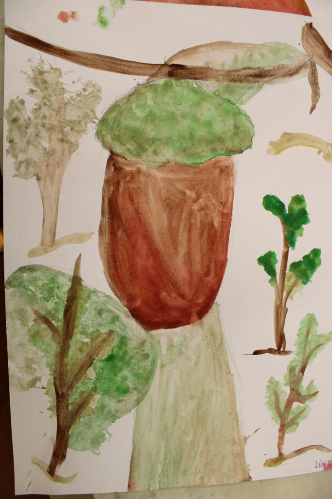 Kresba přírodnin v plenéru, vodové barvy, tužka, 2.-4.roč., práce žáků p.uč.Langrové