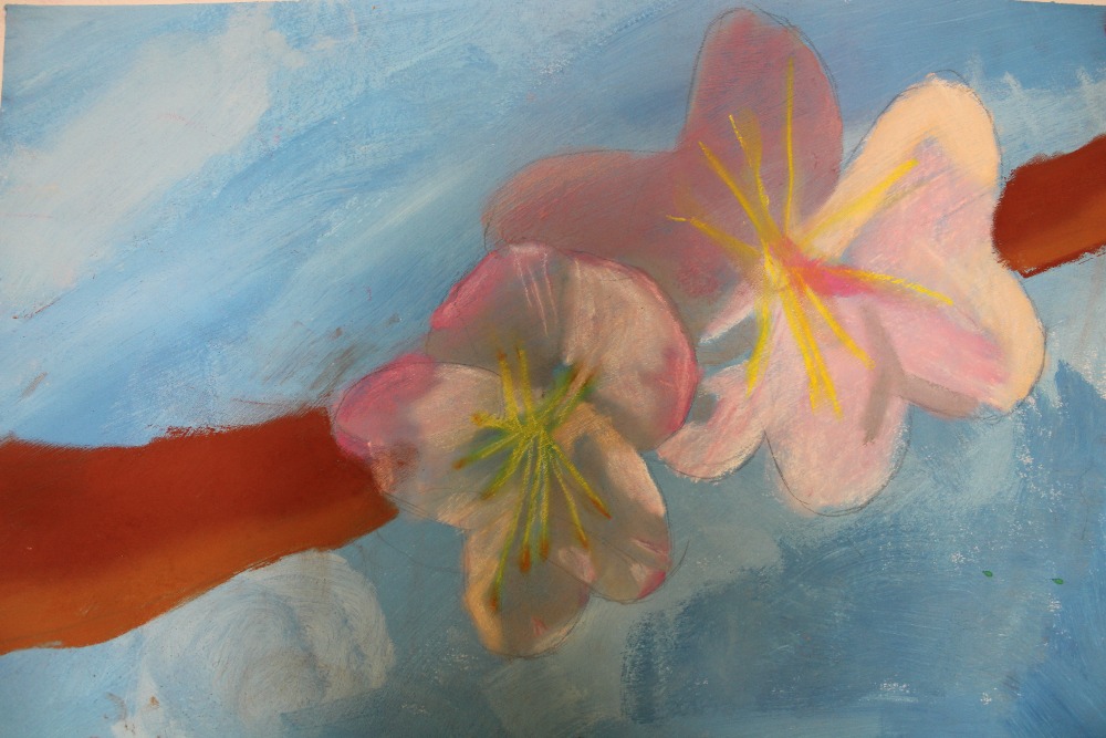 Kvetoucí stromy,tempera + suchý pastel, 2.-4.roč., žáci p.uč.Langrové
