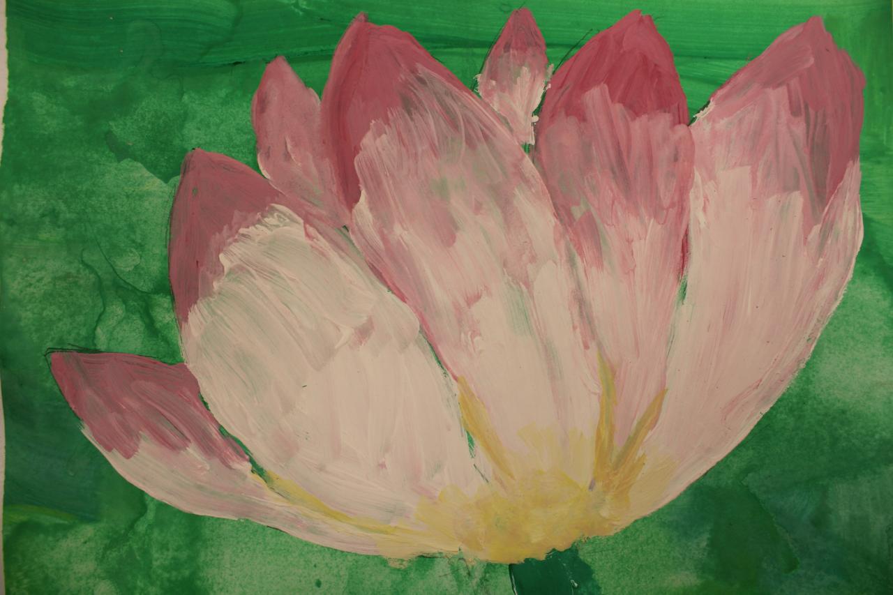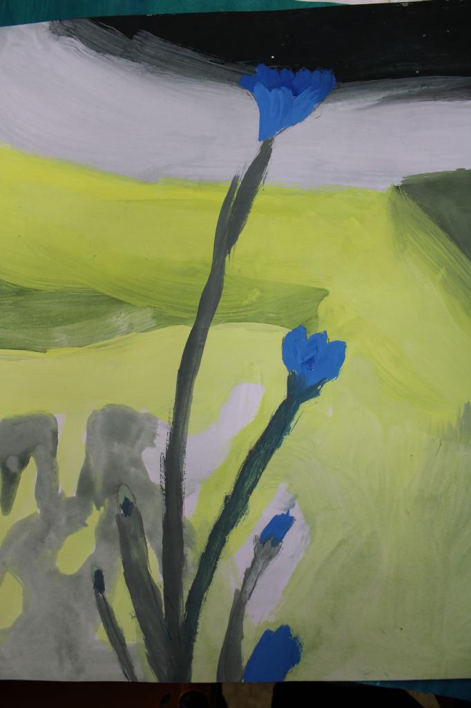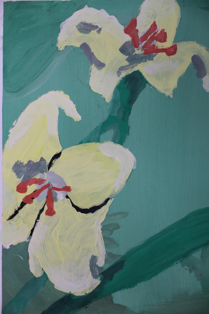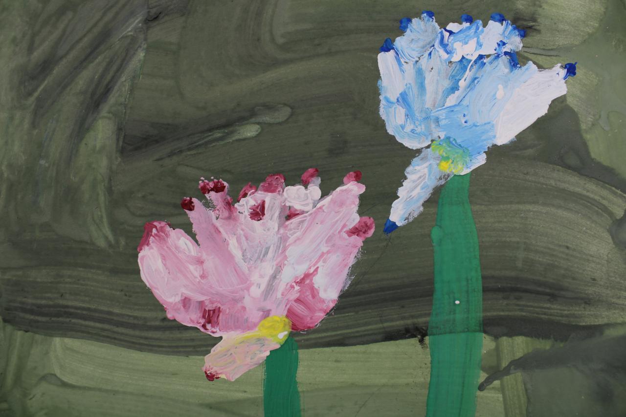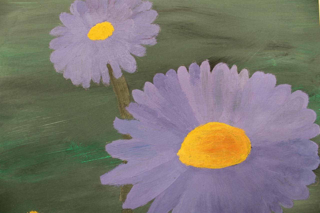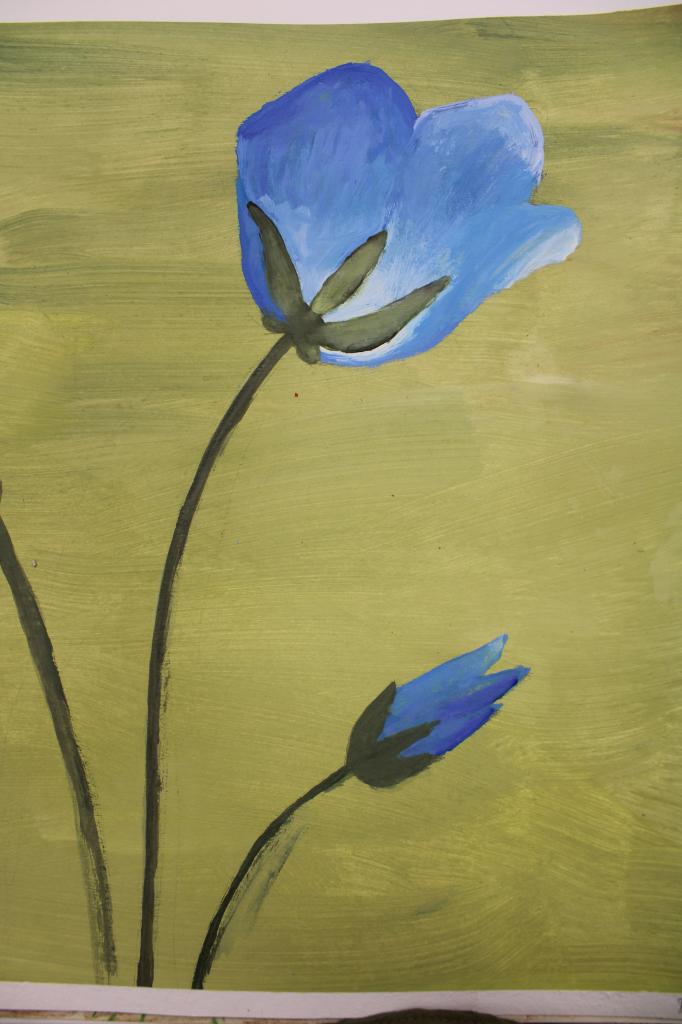 Kytky, malba temperou. Práce žáků p.uč.Langrové