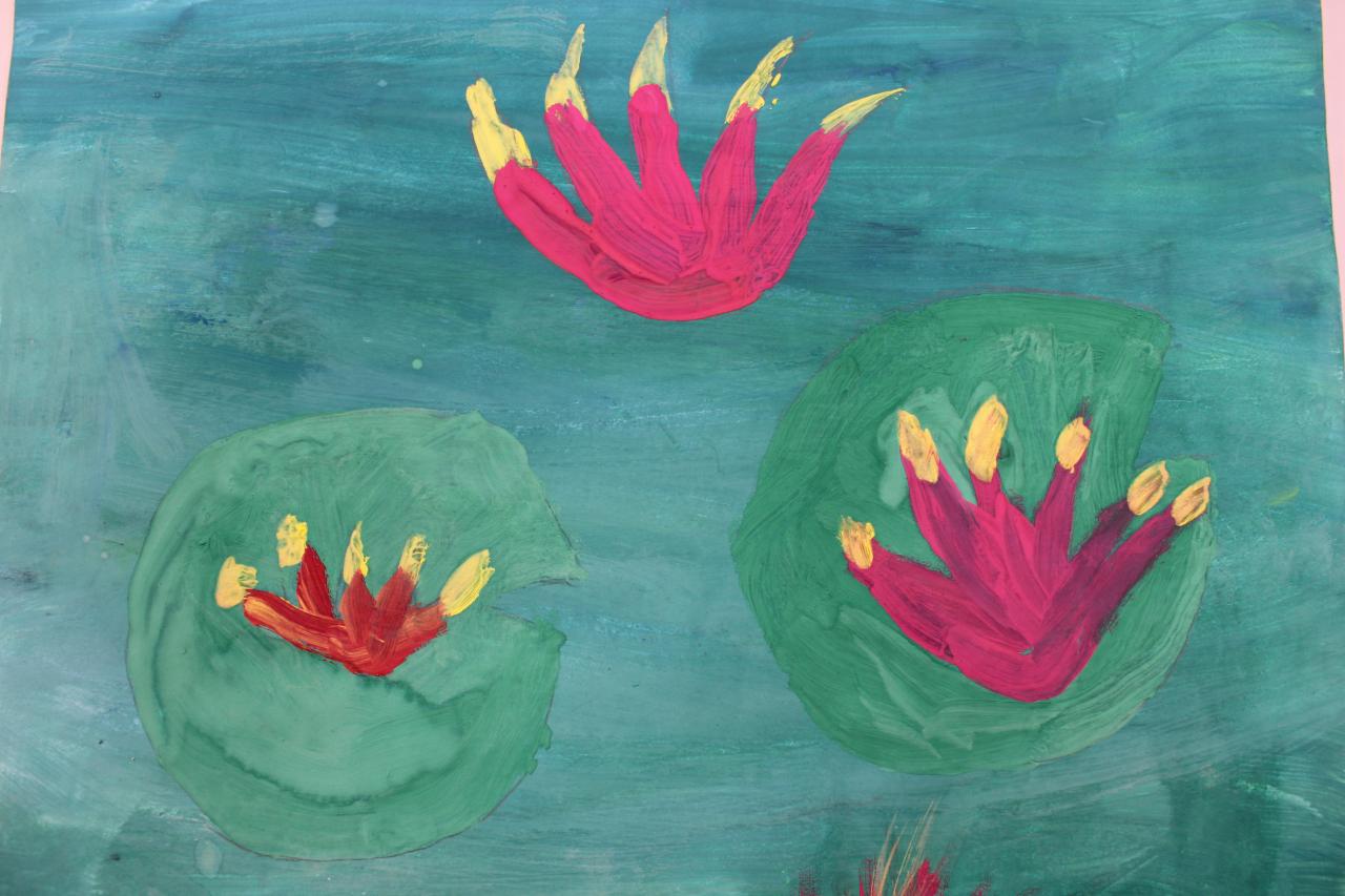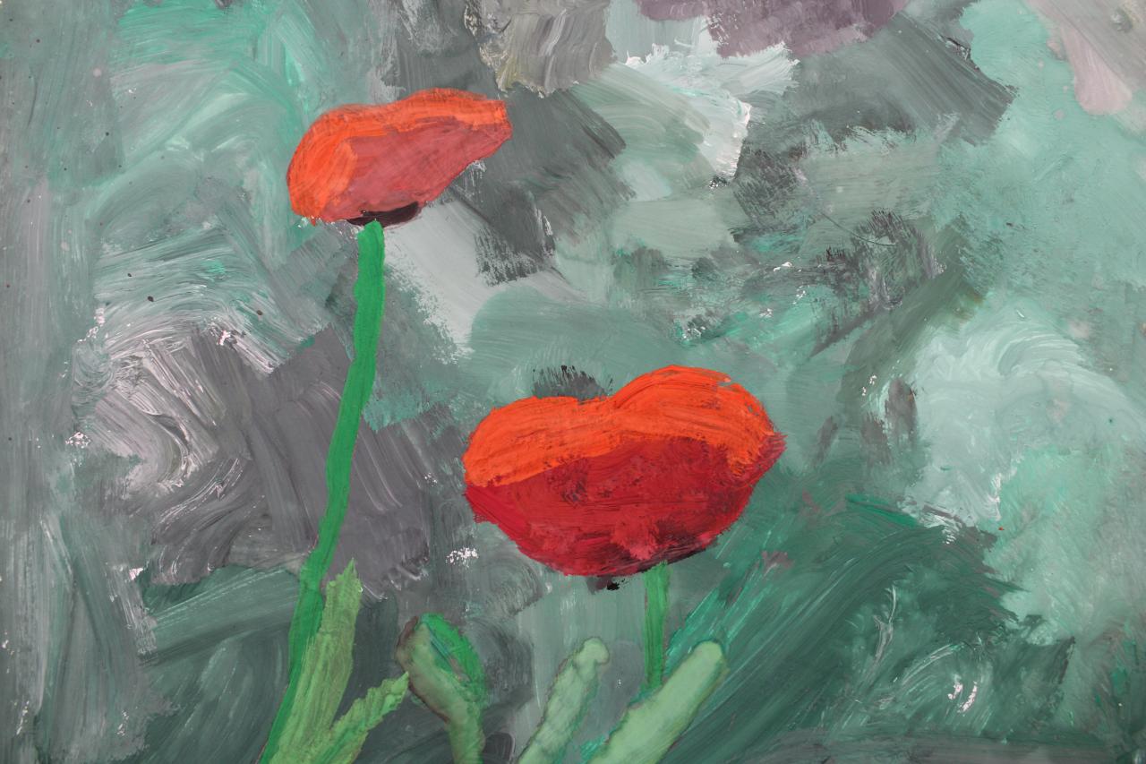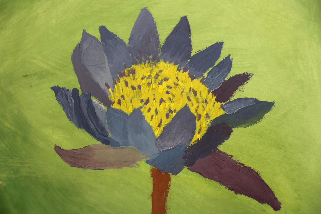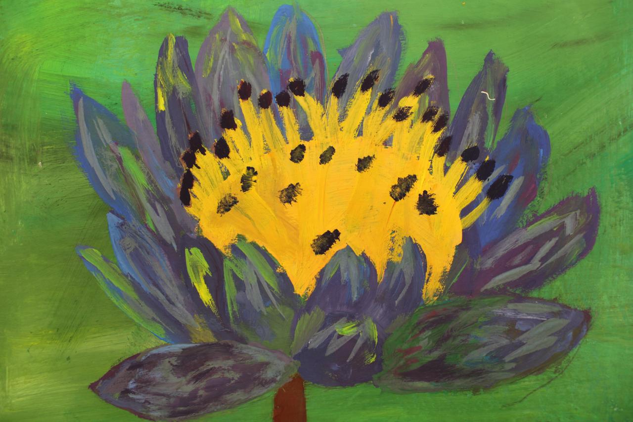 Kytky, malba temperou. Práce žáků p.uč.Langrové