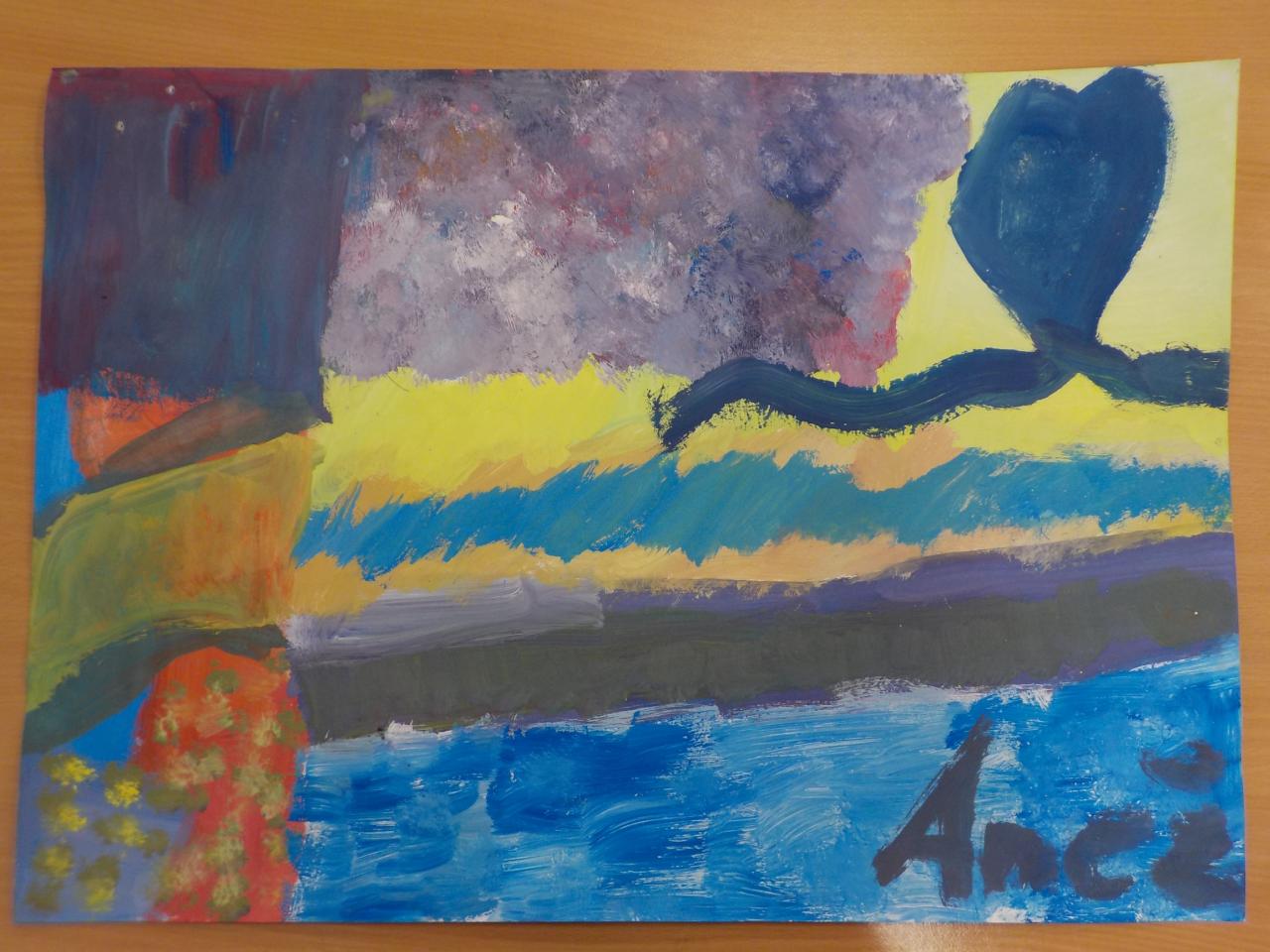 Intuitivní malba temperou, teplé/studené barvy, veselé /smutné barvy