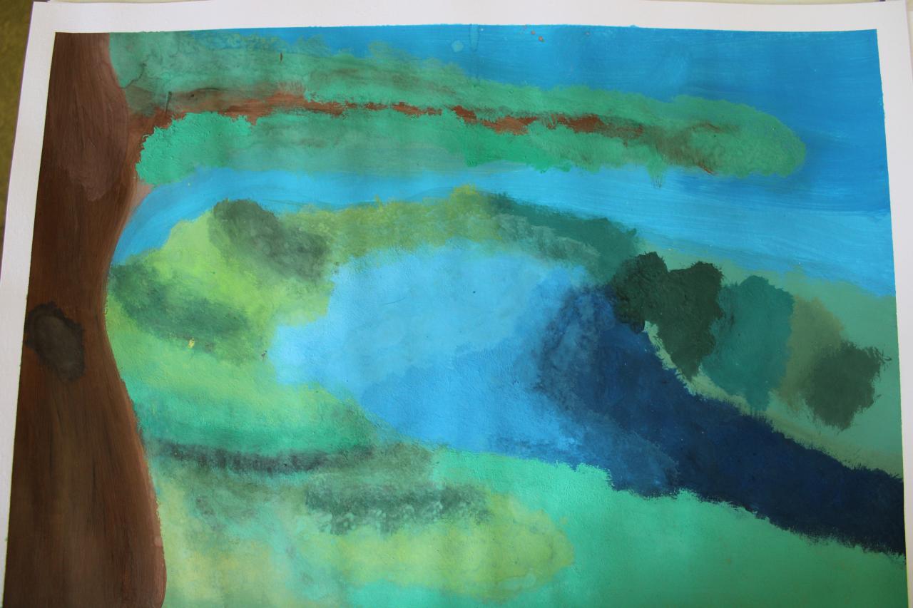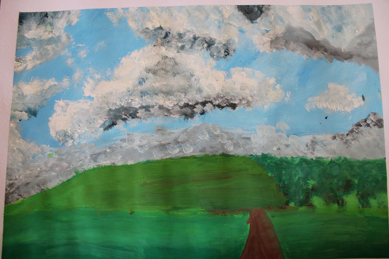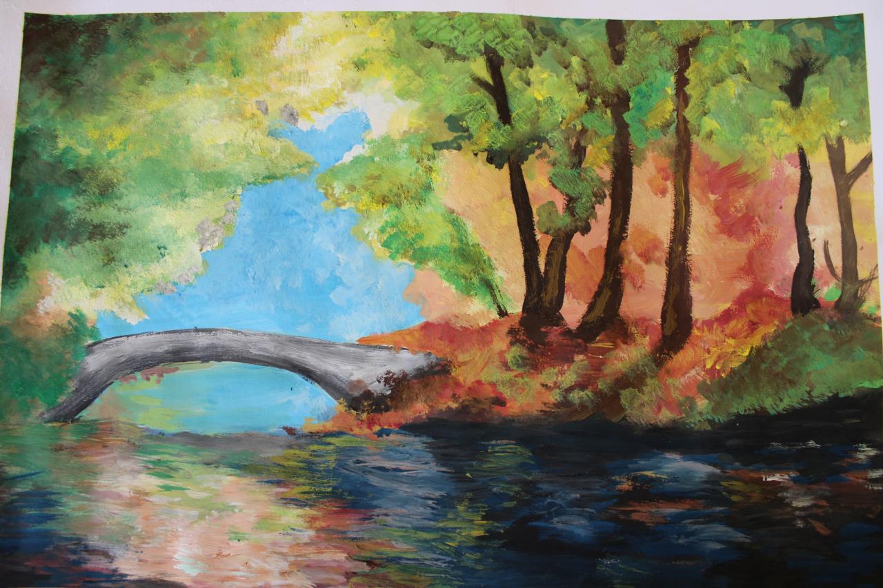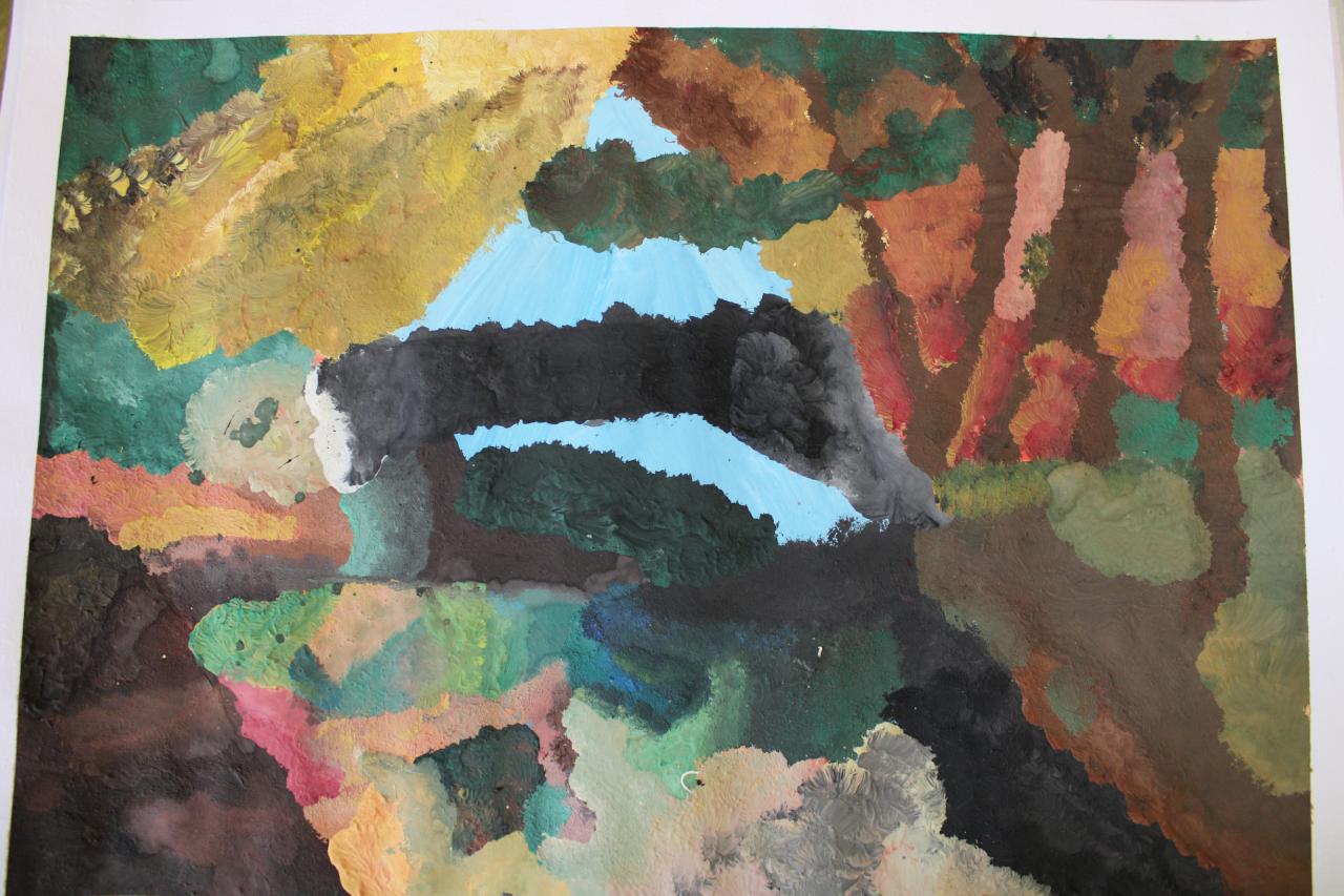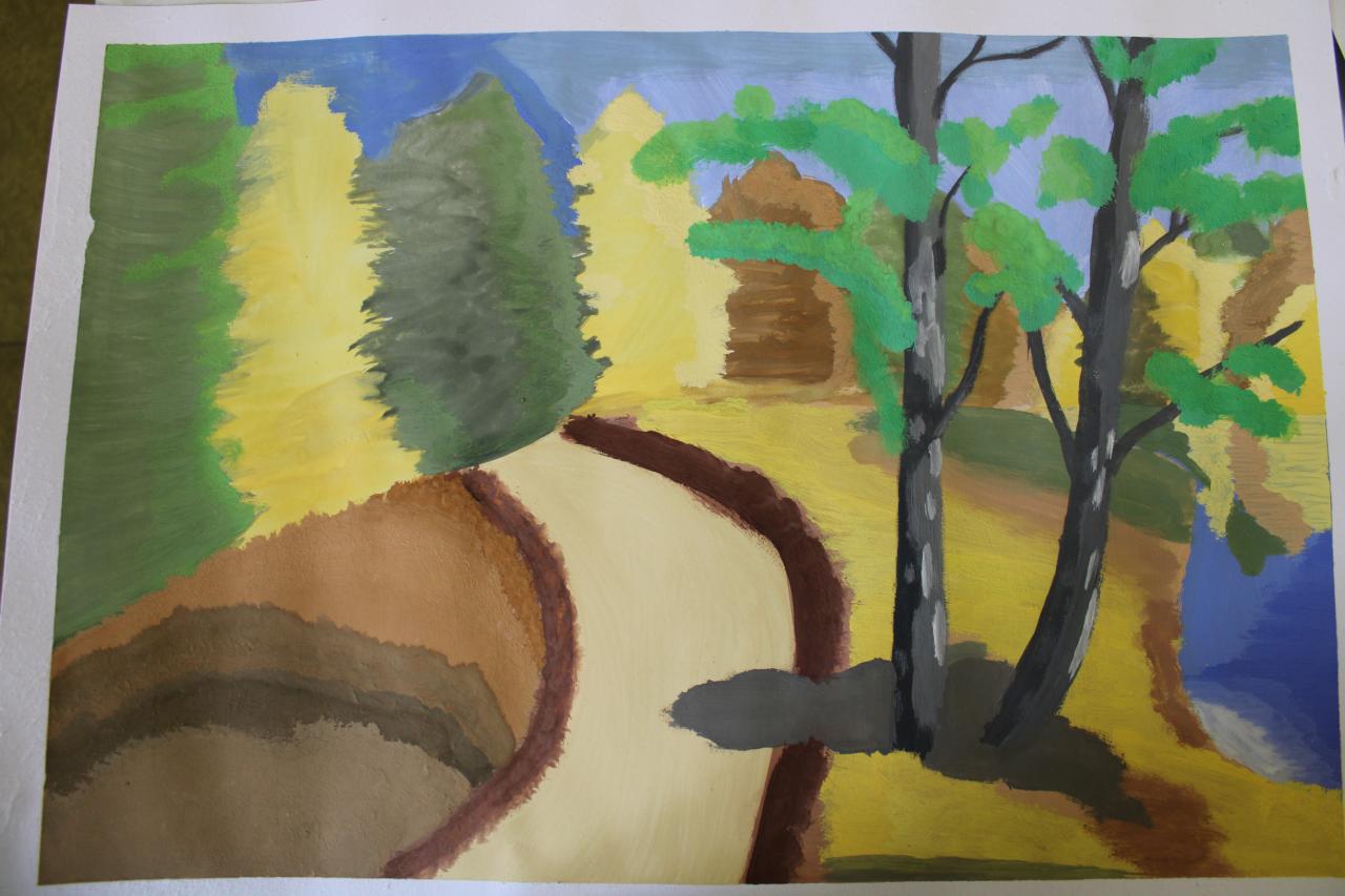 Podzimní krajina, tempera, 4.-6.roč.,-žáci p.uč.Langrové
