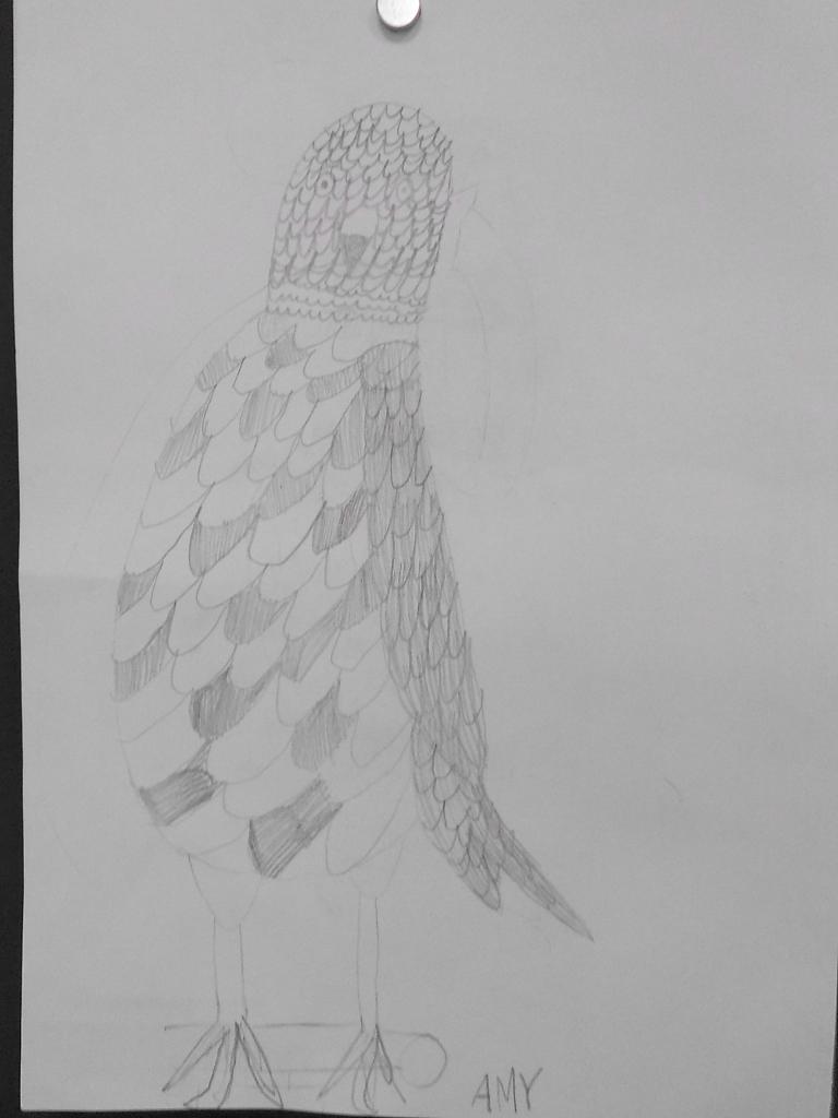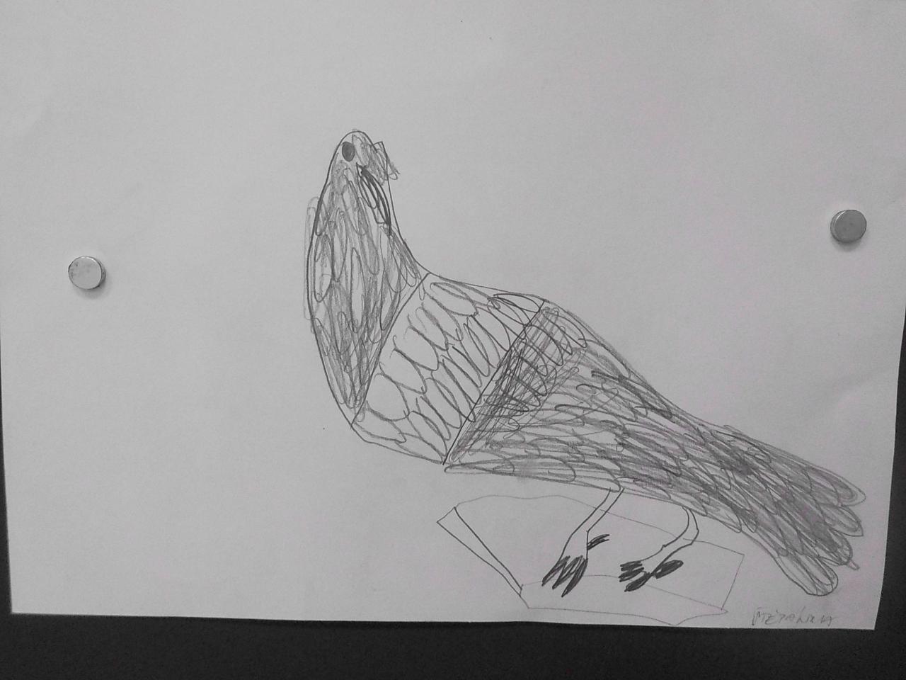 studijní kresba rudkou podle vycpaných ptáků