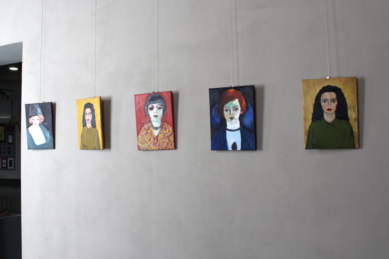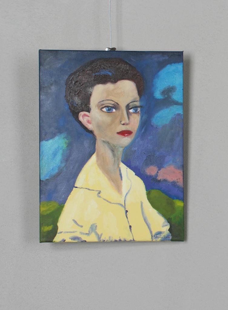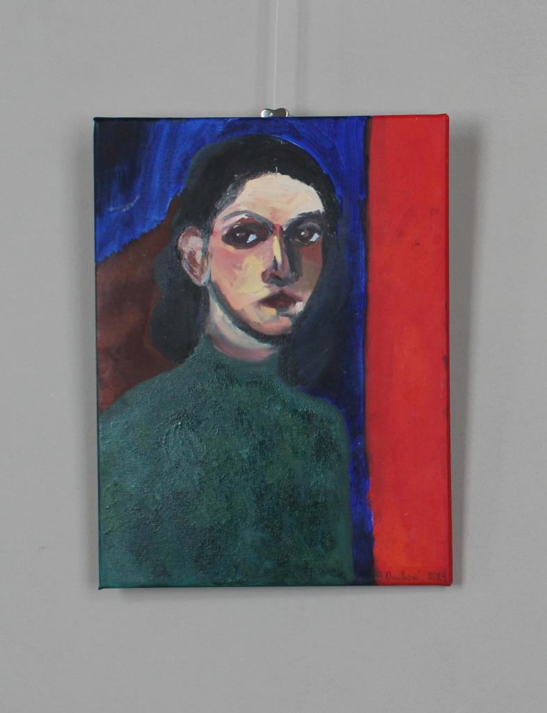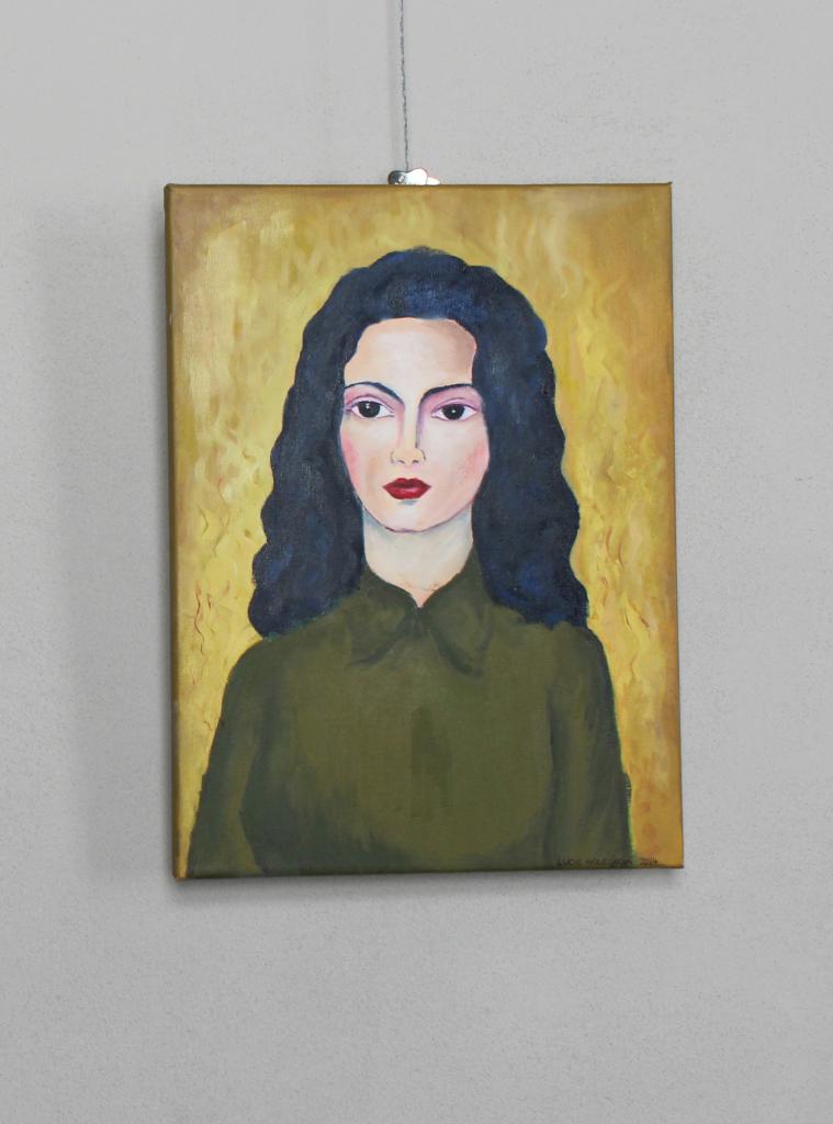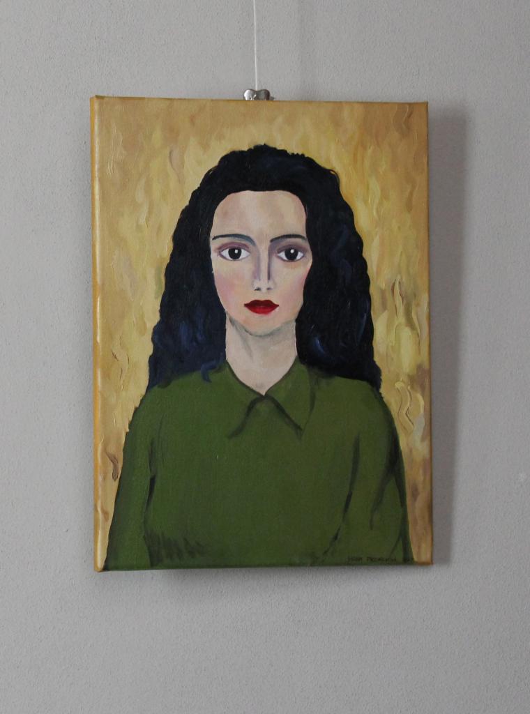 Malba akrylem a olejem na plátno. Foto z výstavy v Muzeu Napajedla. Žákyně 5.-6. ročník. Malby vznikly v rámci projektu "Šablony".