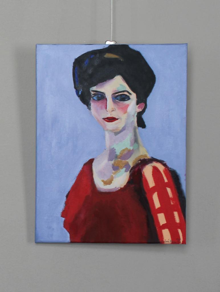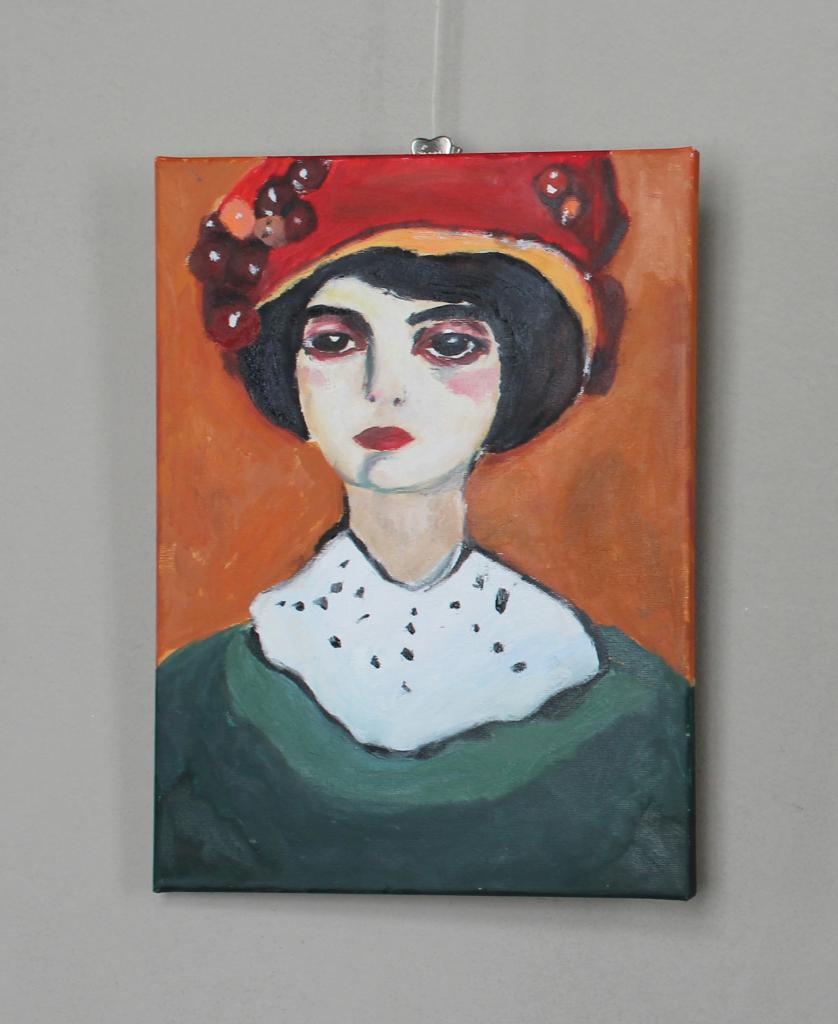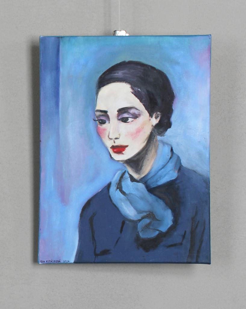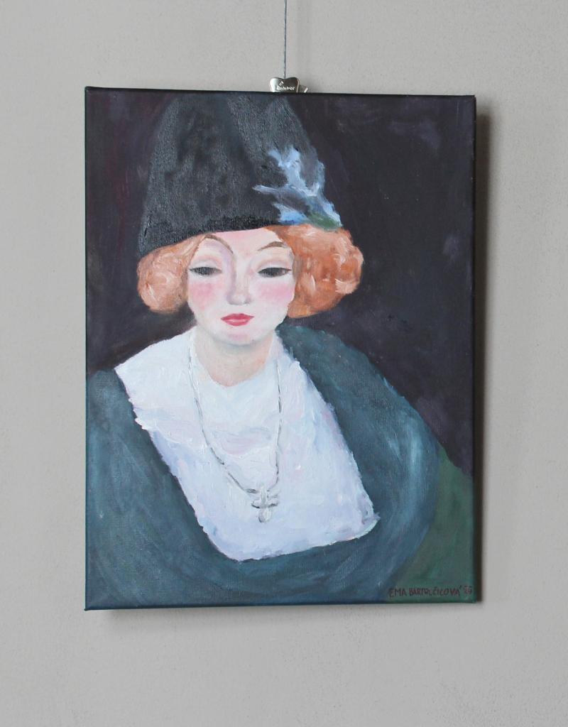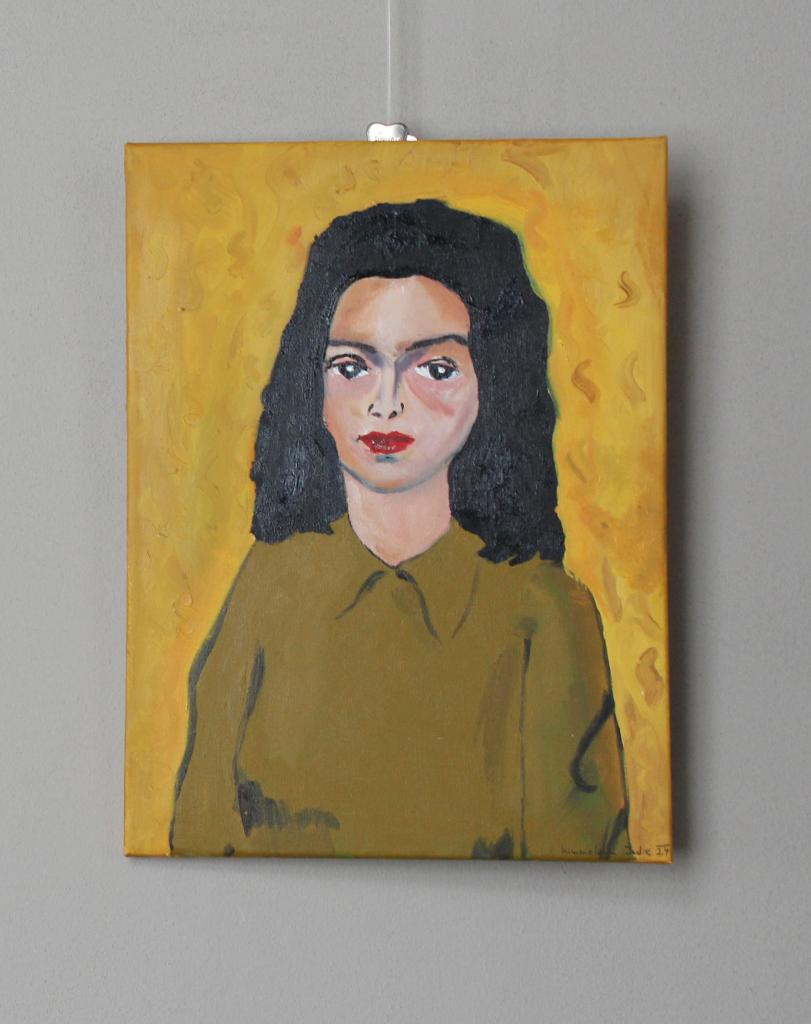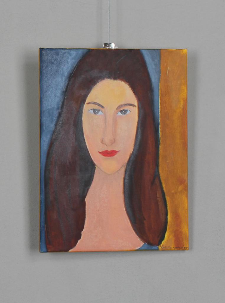 Malba akrylem a olejem na plátno. Foto z výstavy v Muzeu Napajedla. Žákyně 5.-6. ročník. Malby vznikly v rámci projektu "Šablony".