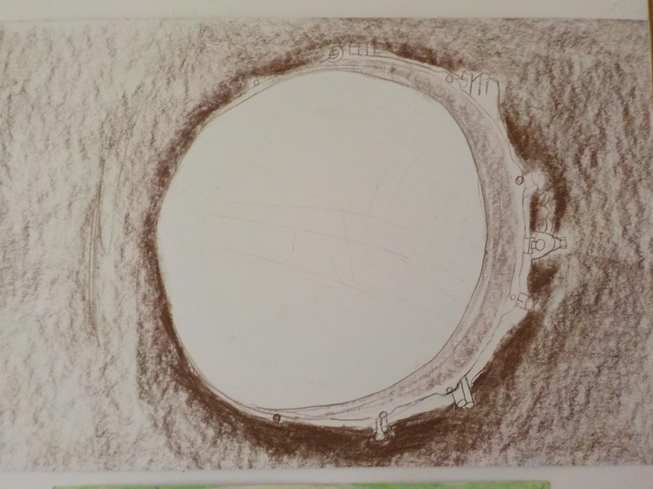 kresba hudebních nástrojů podle skutečnosti pro školní výukovou nástěnku, suchý pastel