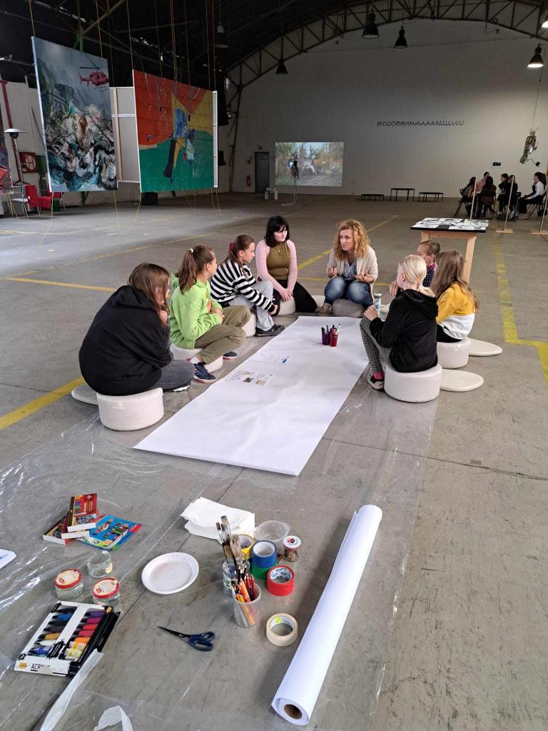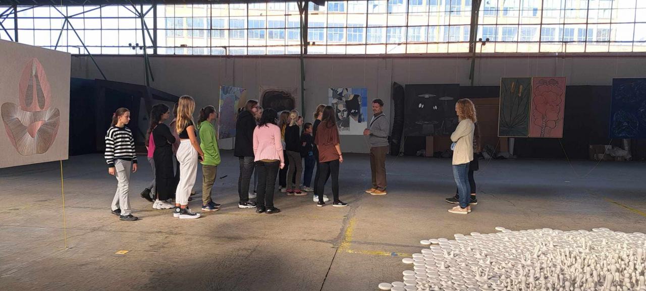 Starší žákyně výtvarného oboru učitelky Ivany Kotáskové navštívily ve čtvrtek 12. října 2023 výstavu TRIENÁLE DŮM UMĚNÍ II.