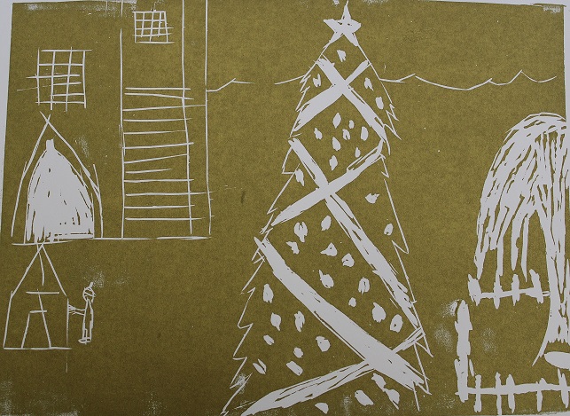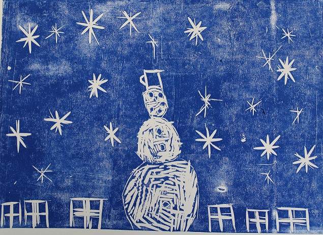 Vánoční linoryt, 3.-5. roč., práce žáku p.uč.Langrové