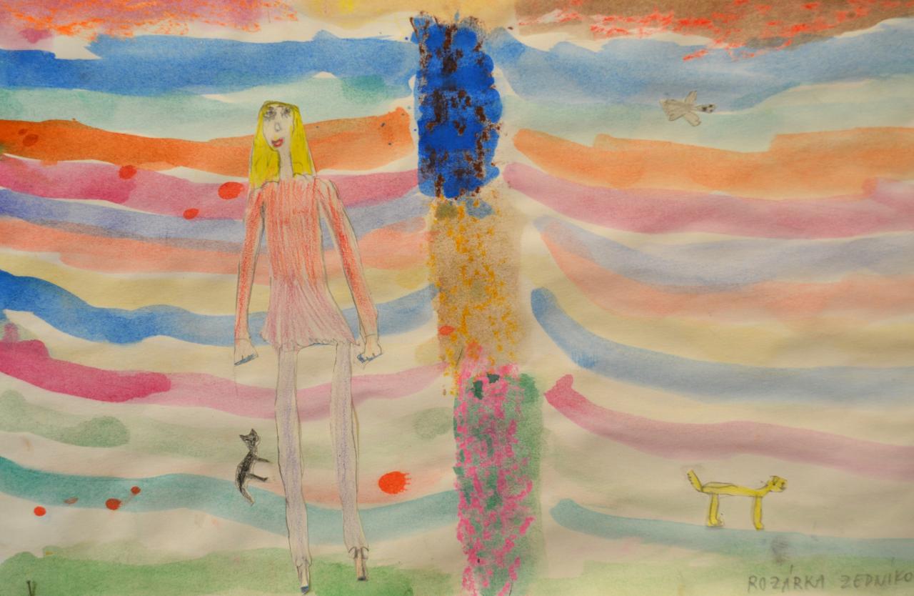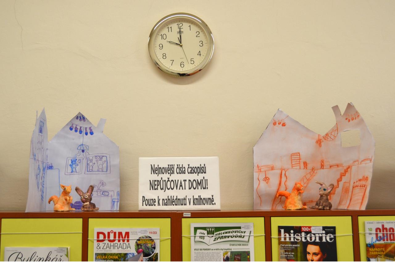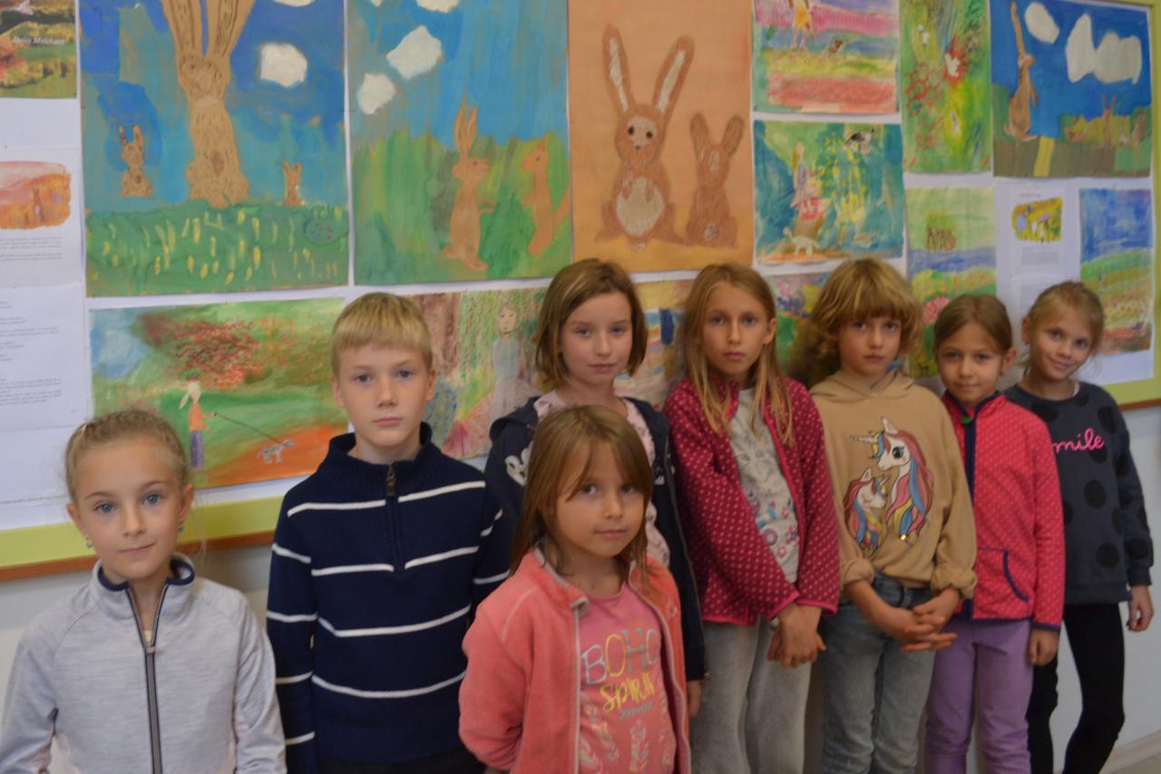K vidění jsou výtvarné práce mladších dětí, které děti vytvořily v Napajedlech a na odloučeném pracovišti v Babicích pod vedením učitelky Ivany Kotáskové. Na výstavě se seznámíte se zajíčkem Jácíčkem a veverkou, jeho kamarádkou.