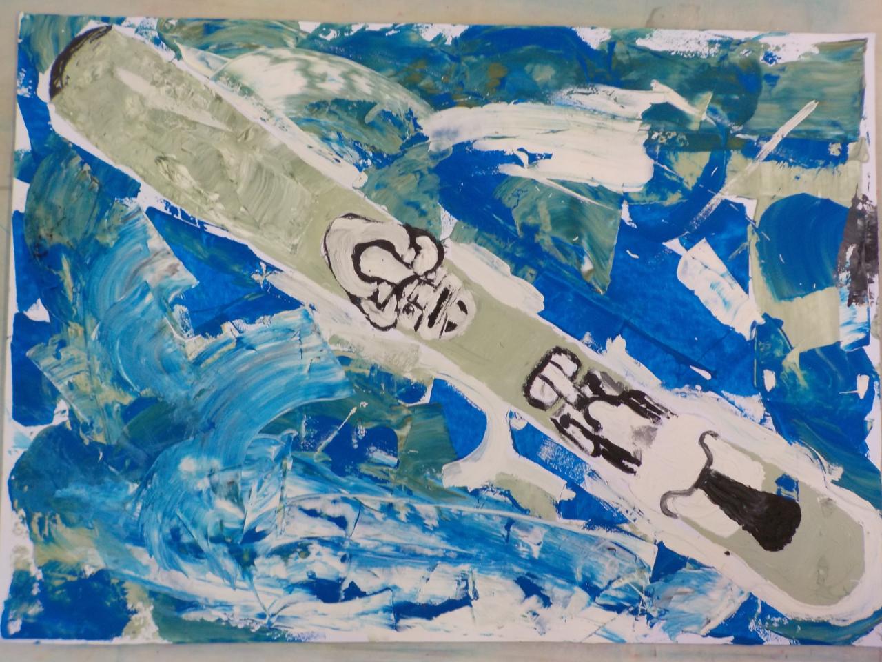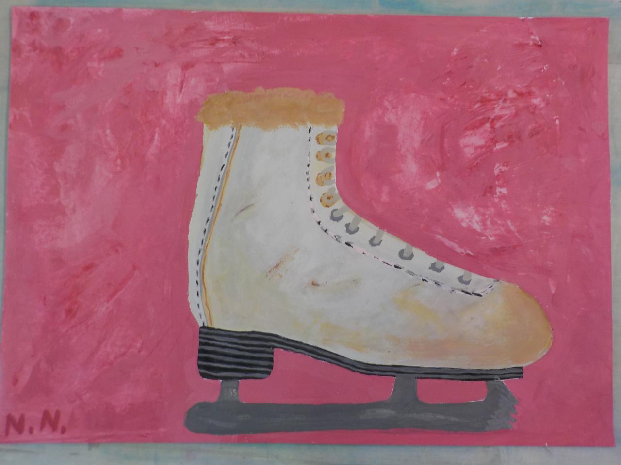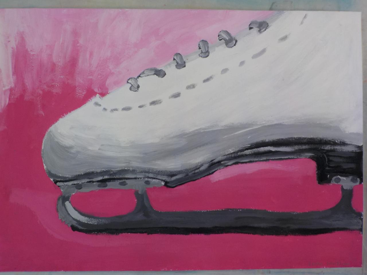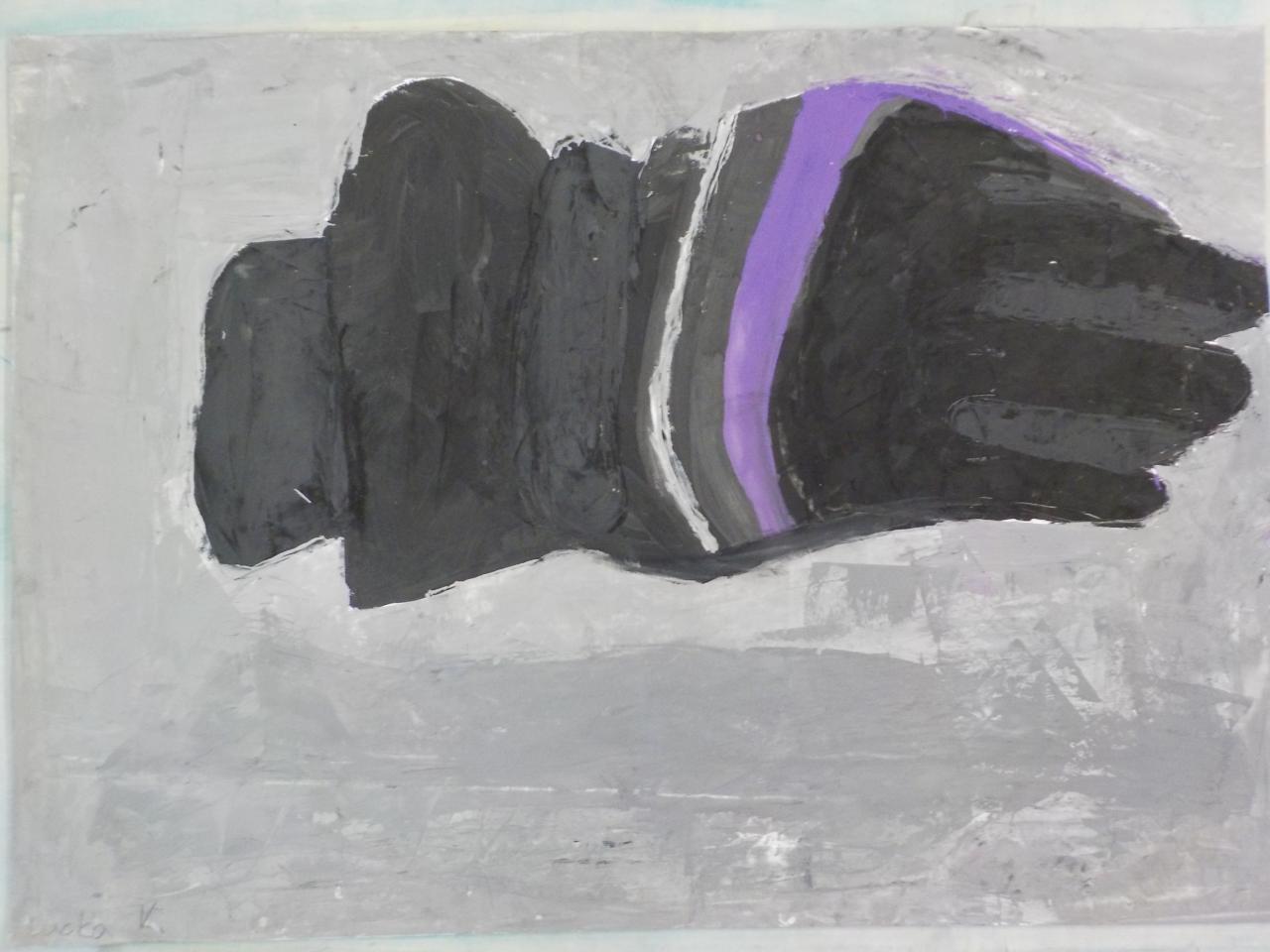 Sportovní vybavení - studie tvaru a proporcí, malba temperovými barvami, štětci, kartou, špachtlí,...formát B2