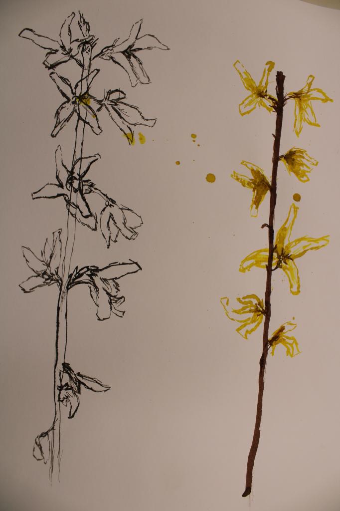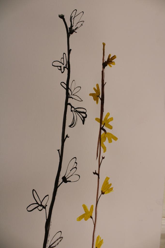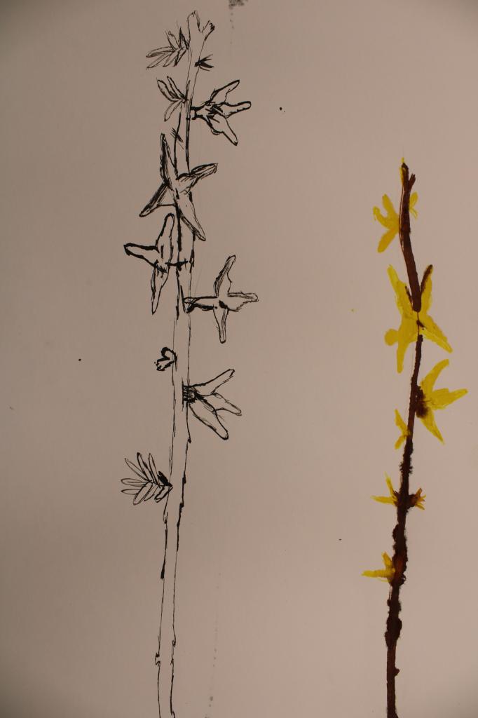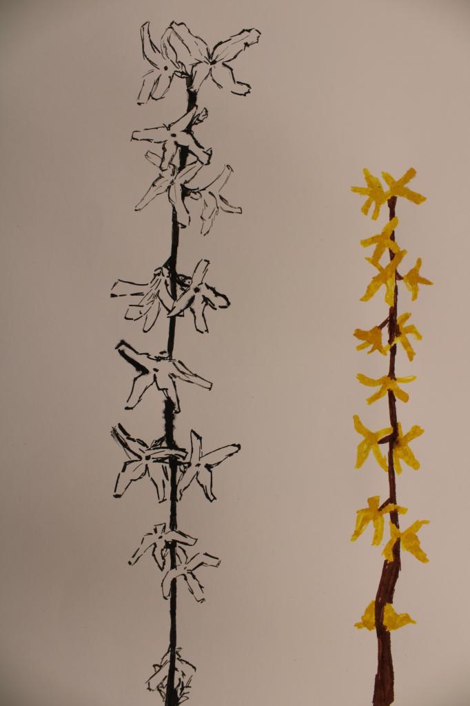 Zlatý déštˇ, tužka, tuš. Práce žáků p.uč.Langrové