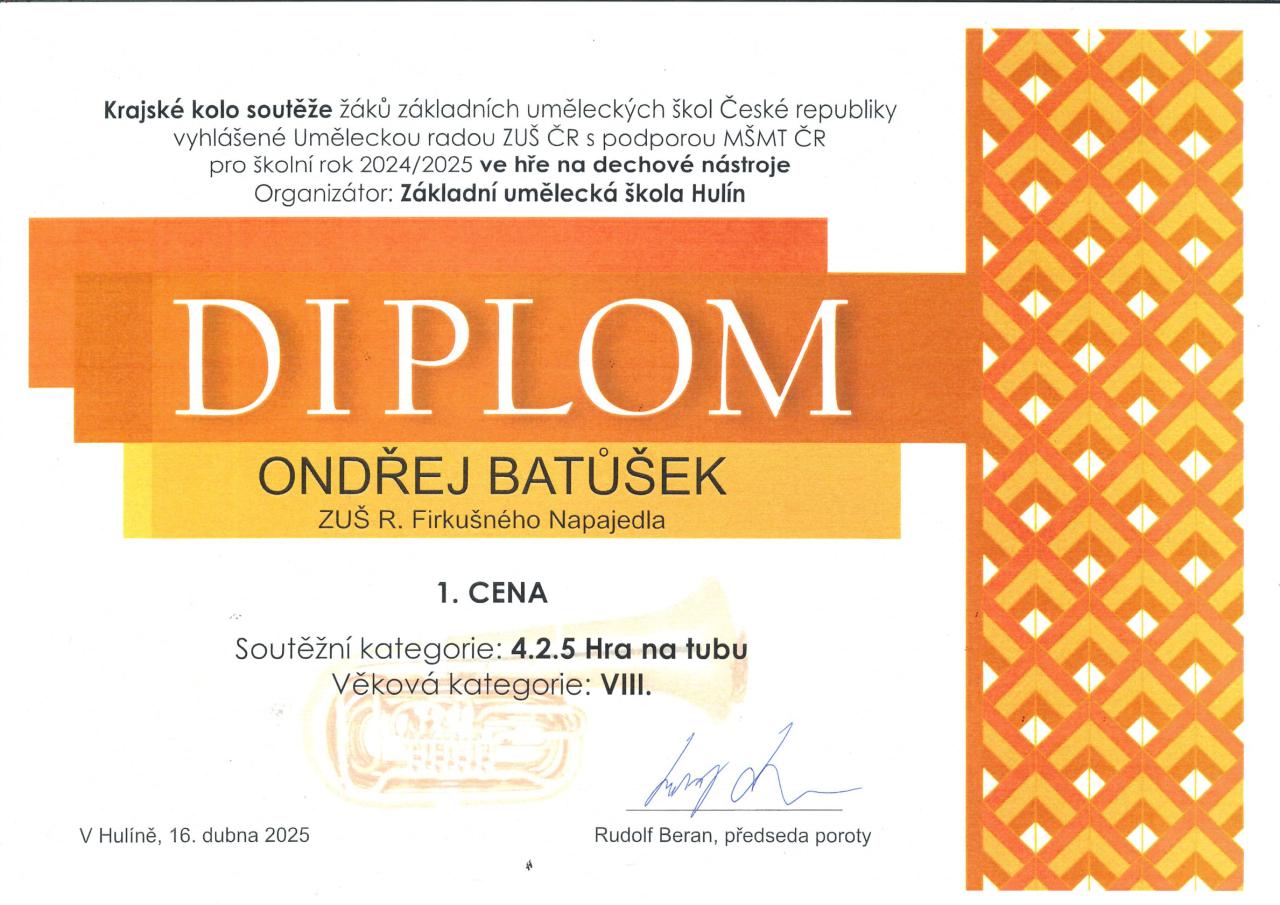Ondřej Batůšek, hra na tubu, VIII. kategorie, (p. uč. Kunert)