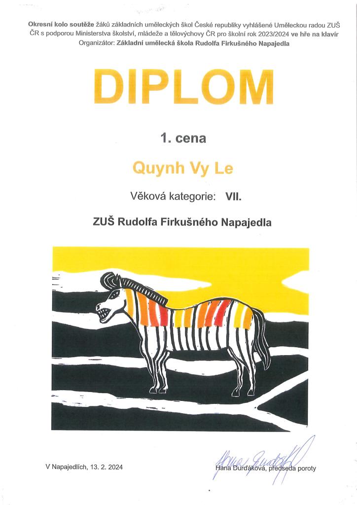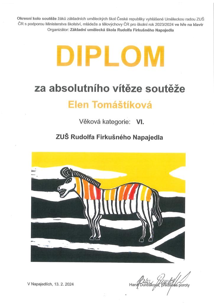 Hra na klavír - výsledková listina ZUŠ R. Firkušného Napajedla