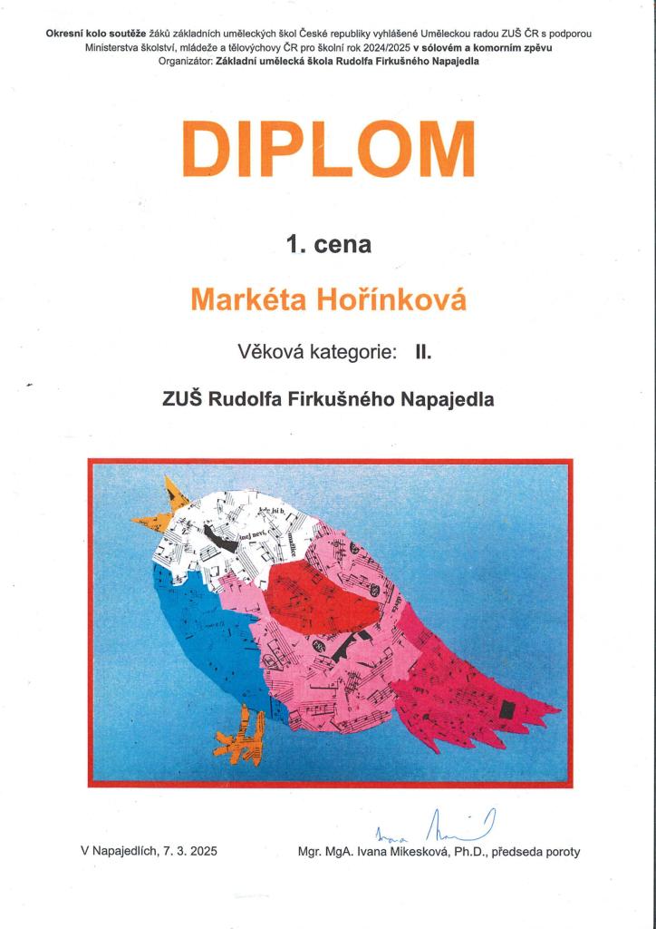 Markéta Hořínková, II. kategorie - 1. cena s postupem do KK, (p. uč. Veselá)