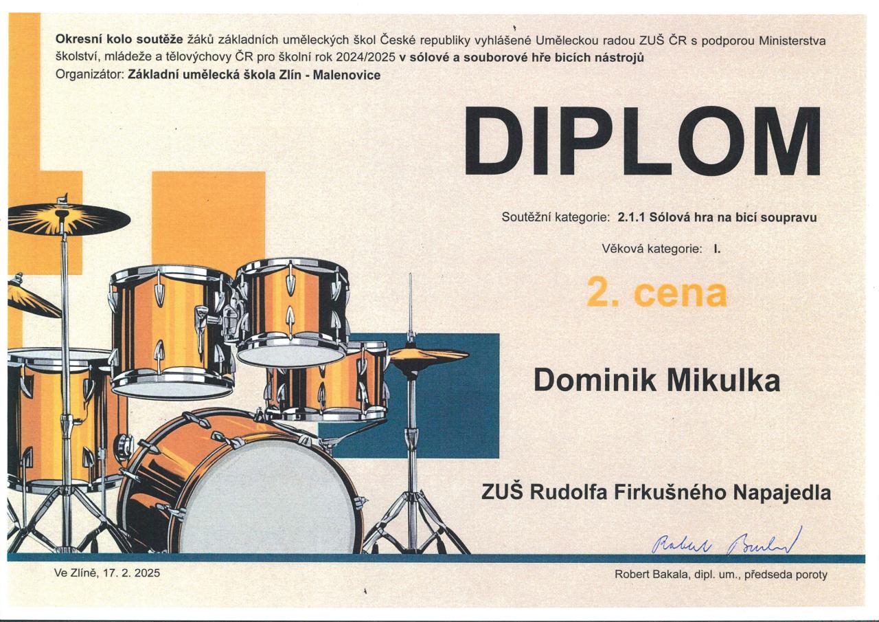 Dominik Mikulka, I. kategorie - 2. cena (p. uč. Kunert)
